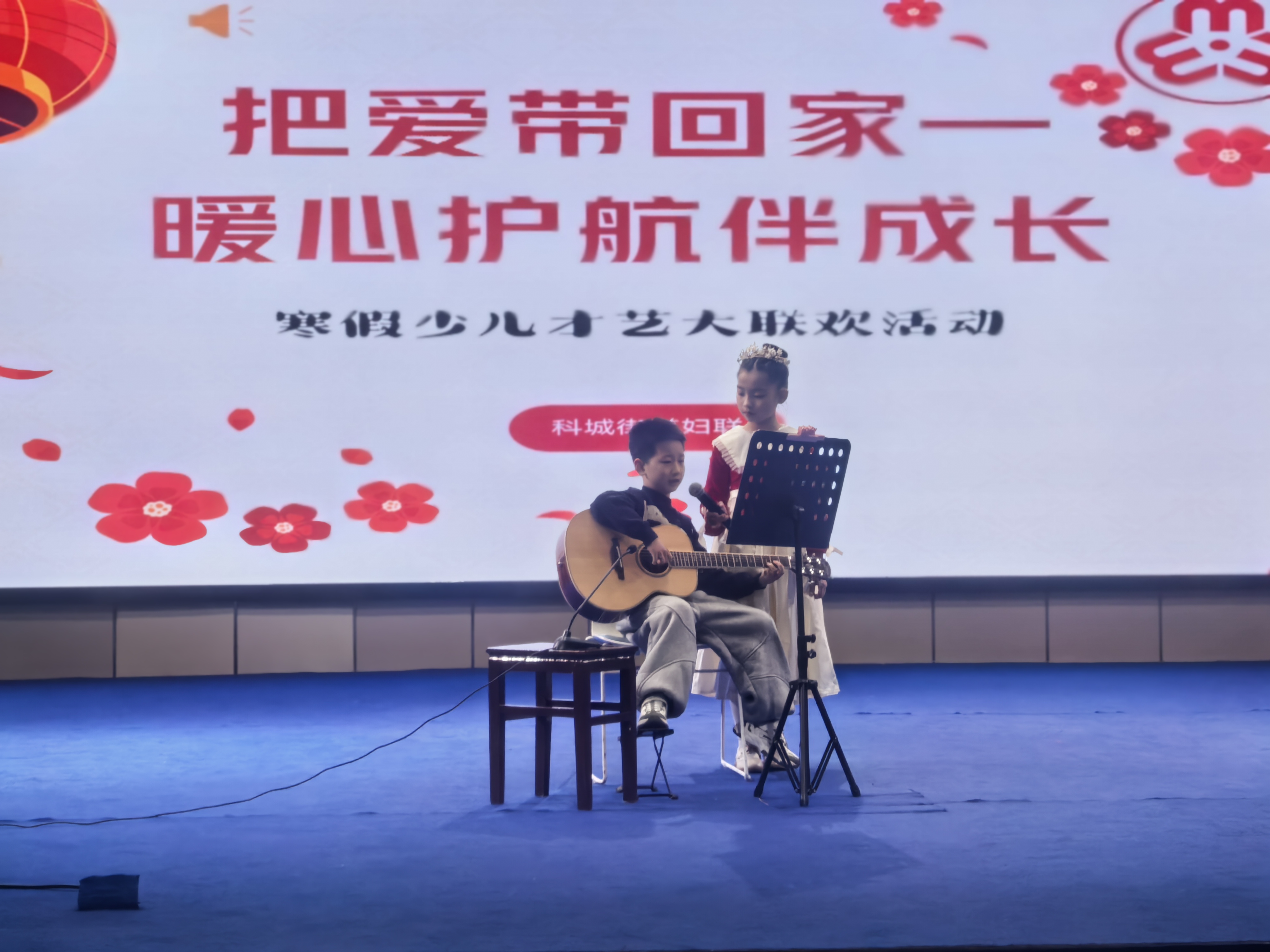 2月9日下午,盐南高新区科城街道妇联以“把爱带回家,暖心护航伴成长”为主题,举办寒假少儿才艺大联欢活动。辖区少年儿童齐聚一堂,用歌声、器乐、舞蹈、朗诵等形式,呈现了一场童趣盎然的文艺盛宴,进一步丰富了少年儿童的寒假文化生活,传递了家庭温暖与关爱,助力孩子们健康快乐成长。
