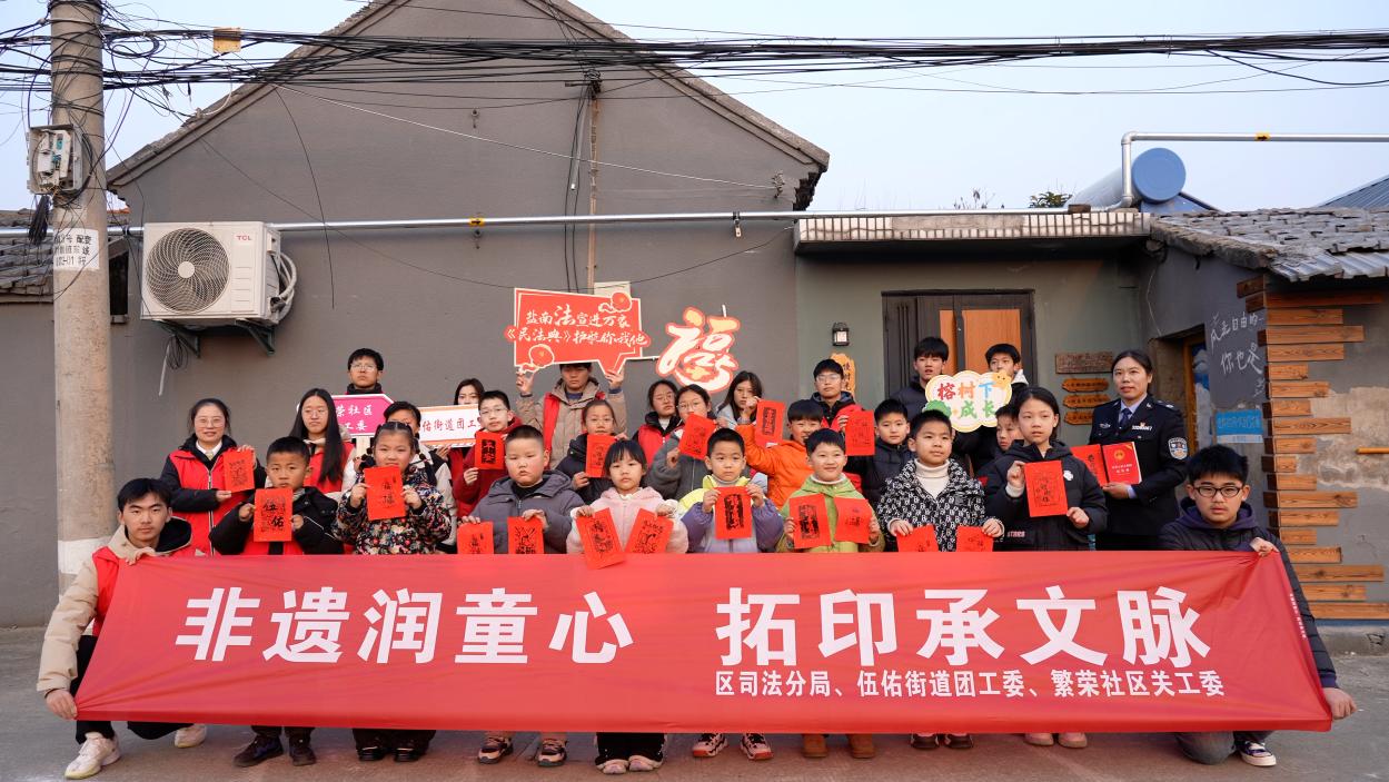 为深入传承中华优秀传统文化,厚植青少年家国情怀与文化自信,丰富未成年人寒假精神文化生活,2月11日,盐南高新区司法分局、伍佑街道团工委、繁荣社区关工委联合开展“非遗润童心拓印承文脉”主题实践活动,让法治护航成长,让非遗浸润童心。