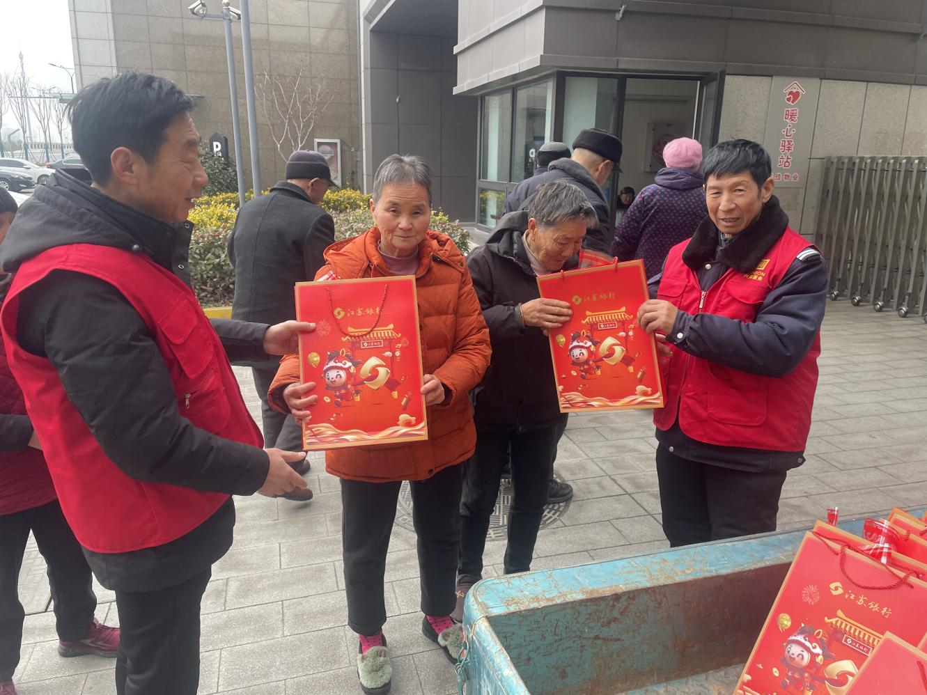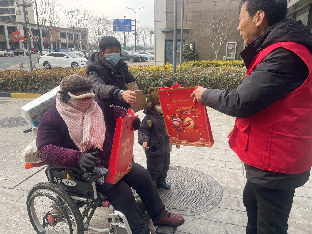 活动当天,志愿者们早早来到小区门口,将一副副满载祝福的春联整齐摆放。鲜艳的红纸映照着志愿者们热情的笑容,成为冬日里一道温暖的风景线。过往居民纷纷驻足,志愿者们热情相送。“谢谢你们,这副对联写得真精神!我就要这个!”居民们的欢声笑语与真诚道谢交织在一起,现场洋溢着喜庆祥和的氛围。与传统形式不同,本次活动并未设置书写环节,而是通过精心准备的春联,以最便捷的方式将祝福送到每位居民手中,让简单的物品传递变得充满人情温度。