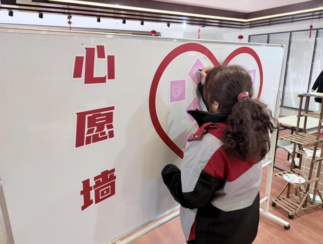 活动现场温馨和睦,工作人员向辛勤奔波的女性劳动者们致以诚挚的问候。在轻松的氛围里,大家敞开心扉,将心底的微心愿认真书写下来。顺丰快递员封亚:乍暖还寒的春天,在外送货特别寒冷,想要一个保温杯,喝点热水......;家政保洁服务员工周宏霞:平时接触冷水,手都干燥开裂了,想要一支护手霜......一个个质朴的心愿,承载着她们工作生活中的小期盼,东闸村随后将她们的小心愿,放入了“工作清单”,即刻助力,点亮小小微心愿。