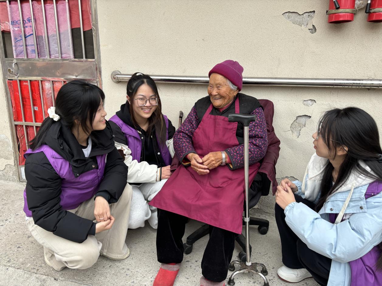演出结束后,志愿者们在社区工作人员的带领下,走进老人家中,开展“一对一”暖心服务。他们与老人亲切交谈,细致了解老人的身体状况和生活需求,并主动帮助打扫卫生、整理家务,用贴心服务传递温暖。在走访过程中,志愿者们意外结识了一位94岁高龄的抗美援朝老战士。虽然老人年事已高、听力不佳,但精神矍铄、乐观开朗。通过老人珍藏的老照片和纪念章,志愿者们感受到了那段峥嵘岁月的厚重与荣光。大家围坐在老人身边,静静聆听、用心致敬,场面感人至深。这不仅是一次志愿服务,更是一堂生动的爱国主义教育课,激励着青年一代铭记历史、勇担使命。