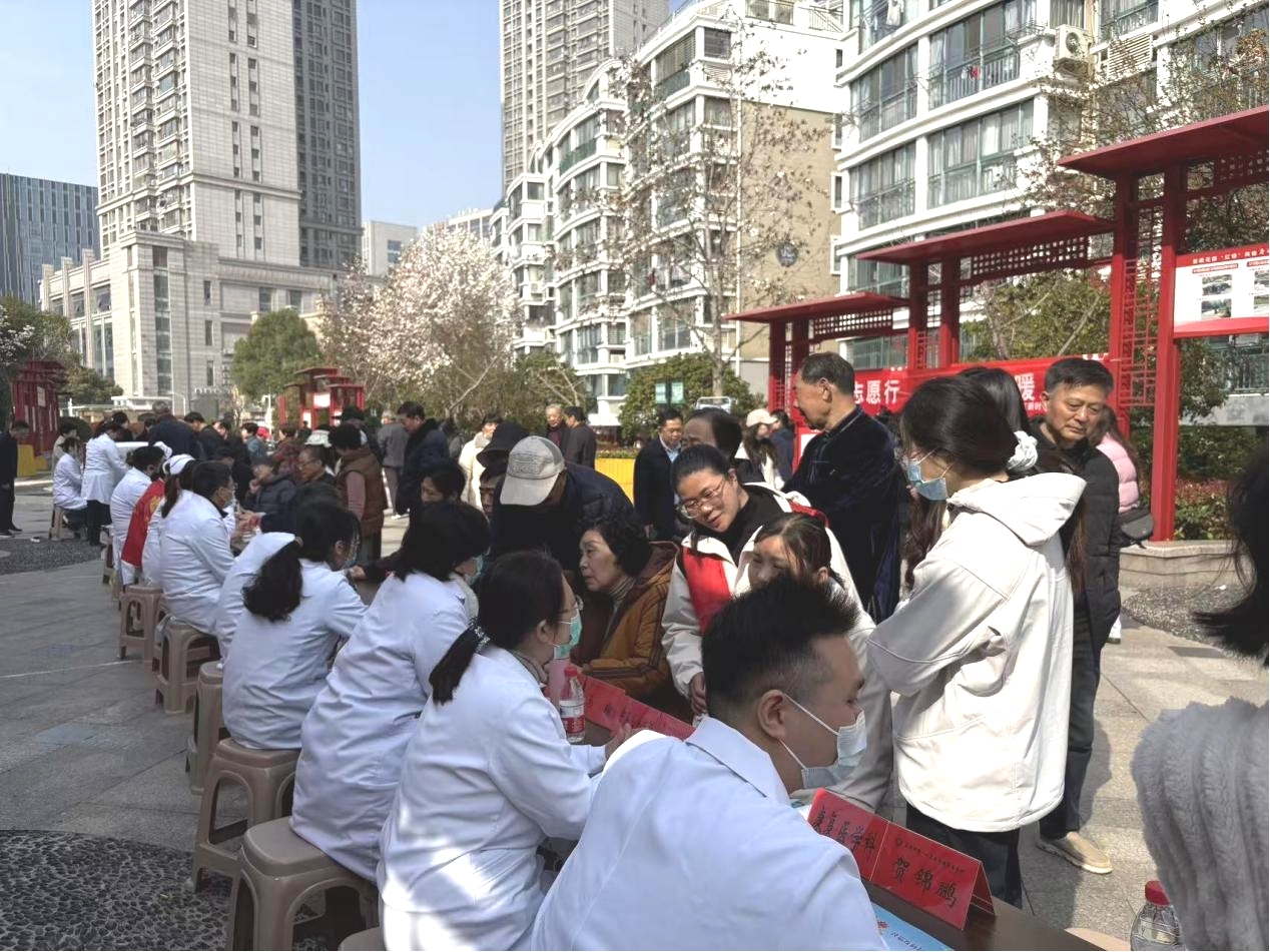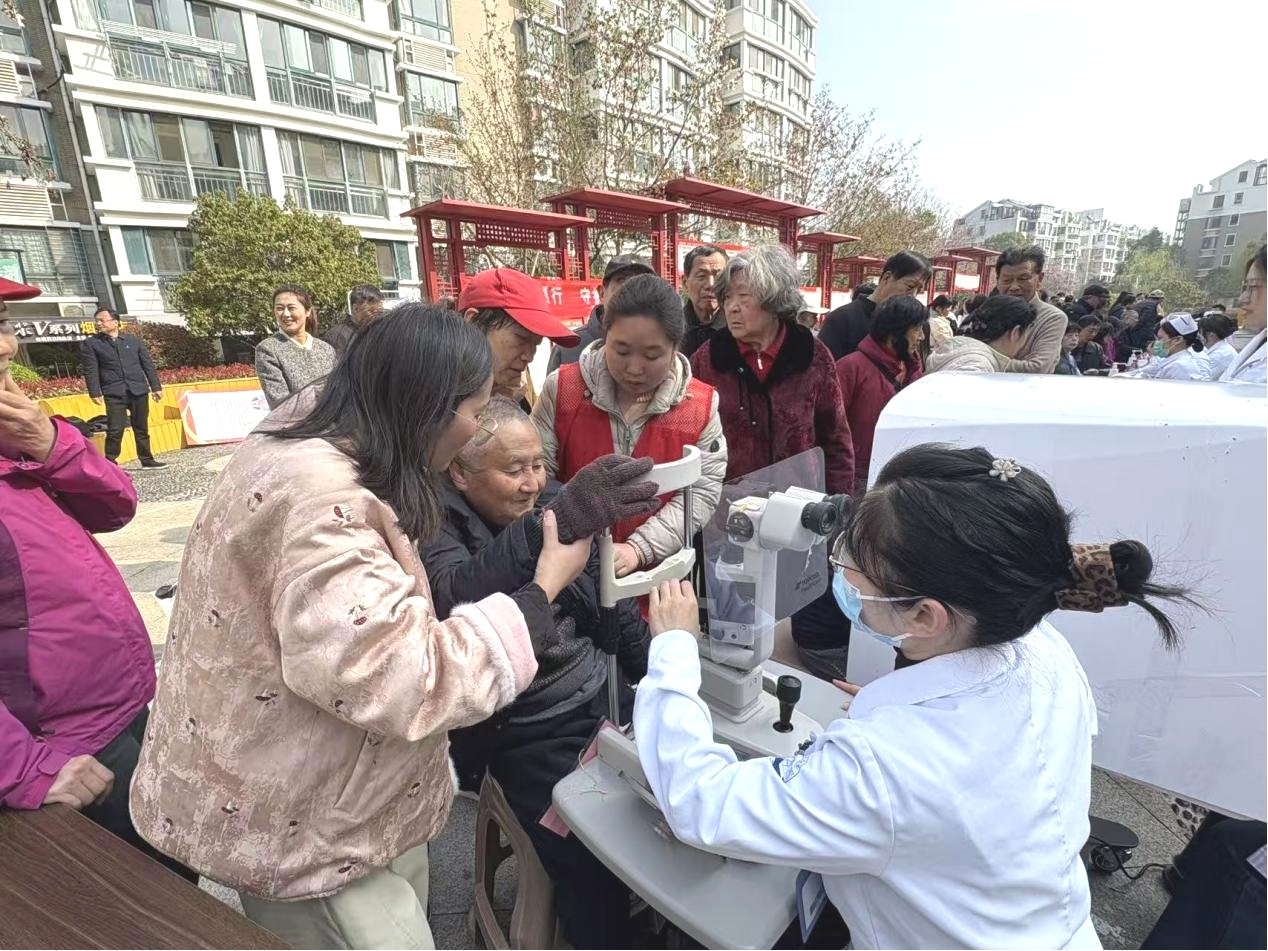 活动现场暖意融融,前来询诊的居民络绎不绝。社区工作人员主动上前搀扶行动不便的老人就座,细心询问其日常身体状况,耐心引导至对应诊疗点位,细致解答居民关于血压调理、日常养生、眼科保健等各类疑问并提供健康建议。医护志愿者们坚守岗位,细心问诊、细致检查,免费提供血压血糖检测、慢性病咨询、中医养生指导、眼科检查等全方位健康服务,真正实现“家门口享优质医疗”。