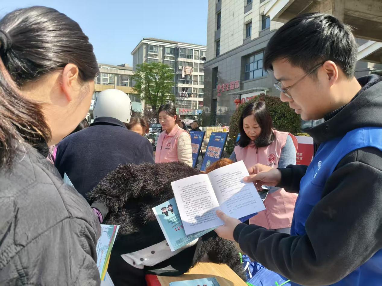 上午9点,洋桥社区生生超市门口的小广场人头攒动。国家安全、反诈宣传等展板整齐排列,“国家安全人人有责”的标语格外醒目,吸引过往群众驻足了解。“阿姨,您说的链接可能就是网络间谍设下的陷阱,千万别点!”“快递包裹上的地址信息不能随便乱扔,以免个人信息泄露引发安全风险。”区司法分局工作人员和普法志愿者主动向群众宣传国家安全相关法律法规、防范电信网络诈骗等知识,耐心解答居民疑问,用接地气的语言把专业的国安知识讲解得清晰透彻,让群众听得懂、记得住、用得上。