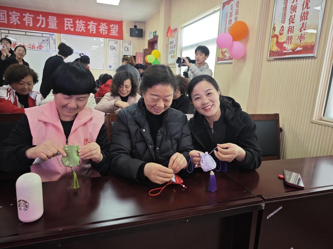 紧接着,志愿者与老人们围坐一堂,手把手教大家缝制香囊。老人们认真穿针引线、细致操作,现场欢声笑语不断,不一会儿,一只只散发着草药清香的香囊便制作完成、呈现在眼前。