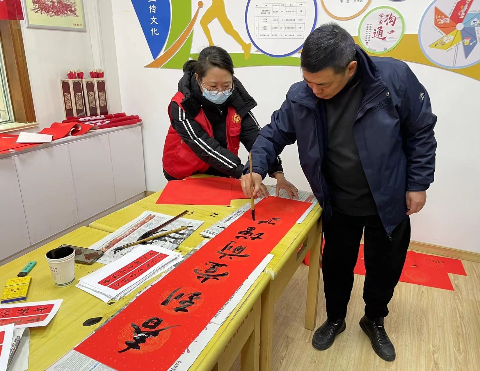 本报讯 为营造欢乐祥和的节日氛围,丰富广大居民的精神文化生活,2月4日,大丰区大中街道建业社区为民服务中心开展“福赠春联祈平安 挥毫泼墨迎新春”活动,邀请区书法协会的老师们为居民写下祝福满满的春联,活动现场被芳香的墨汁和喜庆的年味围绕着。每年春节前为居民写春联送祝福活动成为建业社区节日不可缺少的组成部分,旨在通过此次活动让居民感受传统的年味和营造浓烈的节日氛围。(方勇 汪蕾)