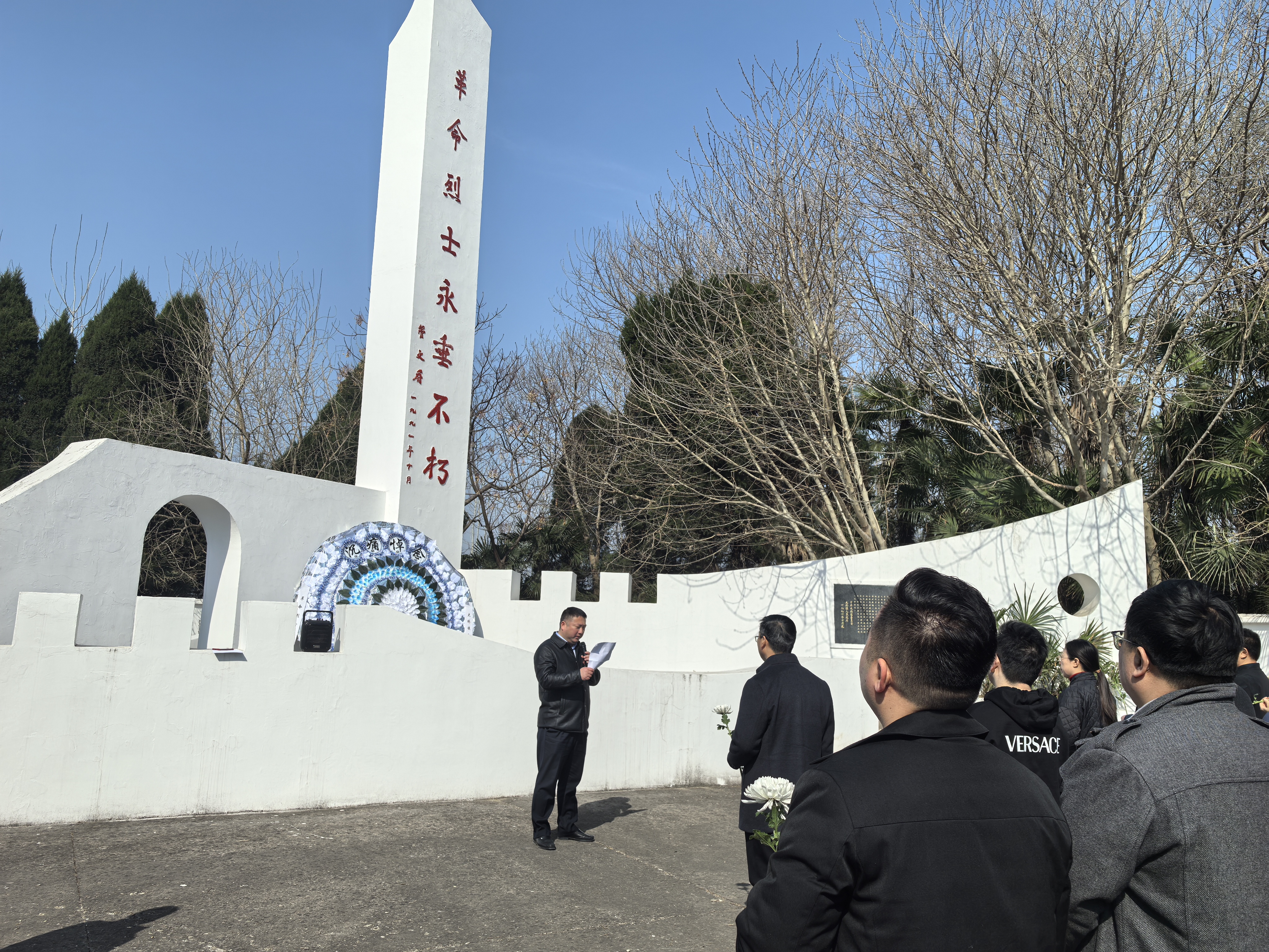 全体人员整齐列队,身着素装,神情凝重地伫立在烈士陵园纪念碑前,伴随着低沉而庄重的哀乐,全体人员向长眠于此的革命烈士默哀三分钟。两名工作人员缓缓抬起花篮,迈着沉稳的步伐走向纪念碑,将花篮稳稳地摆放在碑前。全体人员向革命烈士三鞠躬,寄托无尽的哀思之后,该镇党委书记韦峰发表讲话,深情回顾了革命先烈们为民族独立、人民解放而英勇奋战、无私奉献的伟大事迹,强调今天的幸福生活来之不易。鼓励全体工作人员铭记历史,以先烈为榜样,在各自岗位上勤勉尽责,努力开创乡村振兴大桥建设新篇章。接着,全体人员绕纪念碑一周,瞻仰烈士墓碑。大家轻轻献上手中的白菊花,抚摸着墓碑上镌刻的名字,心中涌起对先烈们的无限敬仰。想到这些名字背后是一个个鲜活的生命,他们为了理想和信念,义无反顾地投身革命,直至献出宝贵的生命。