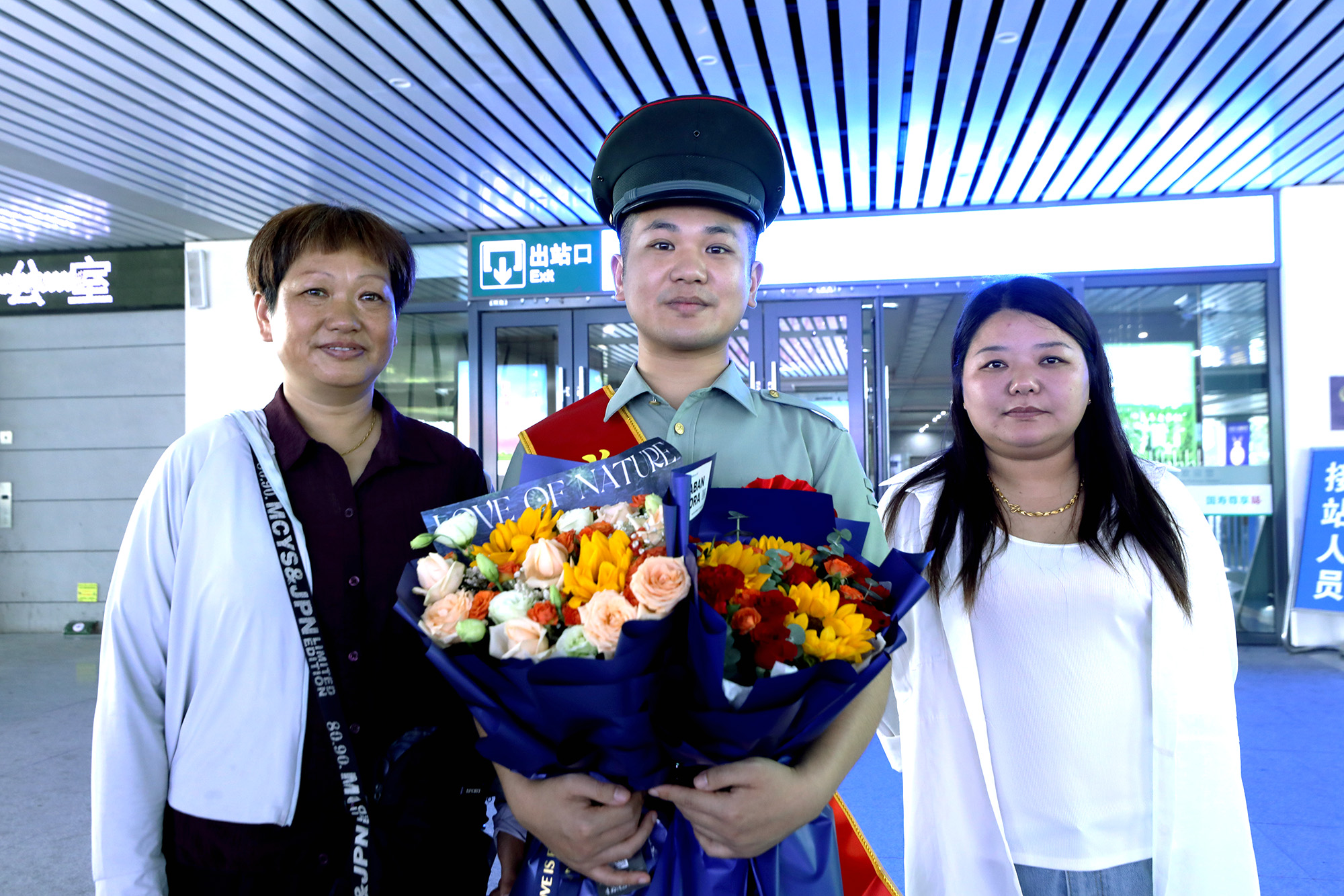 9月4日,大丰区草堰镇退役军人服务站联合镇人武部、成文村工作人员,前往东台高铁站,迎接成文村王陈兆光荣退役返乡。
