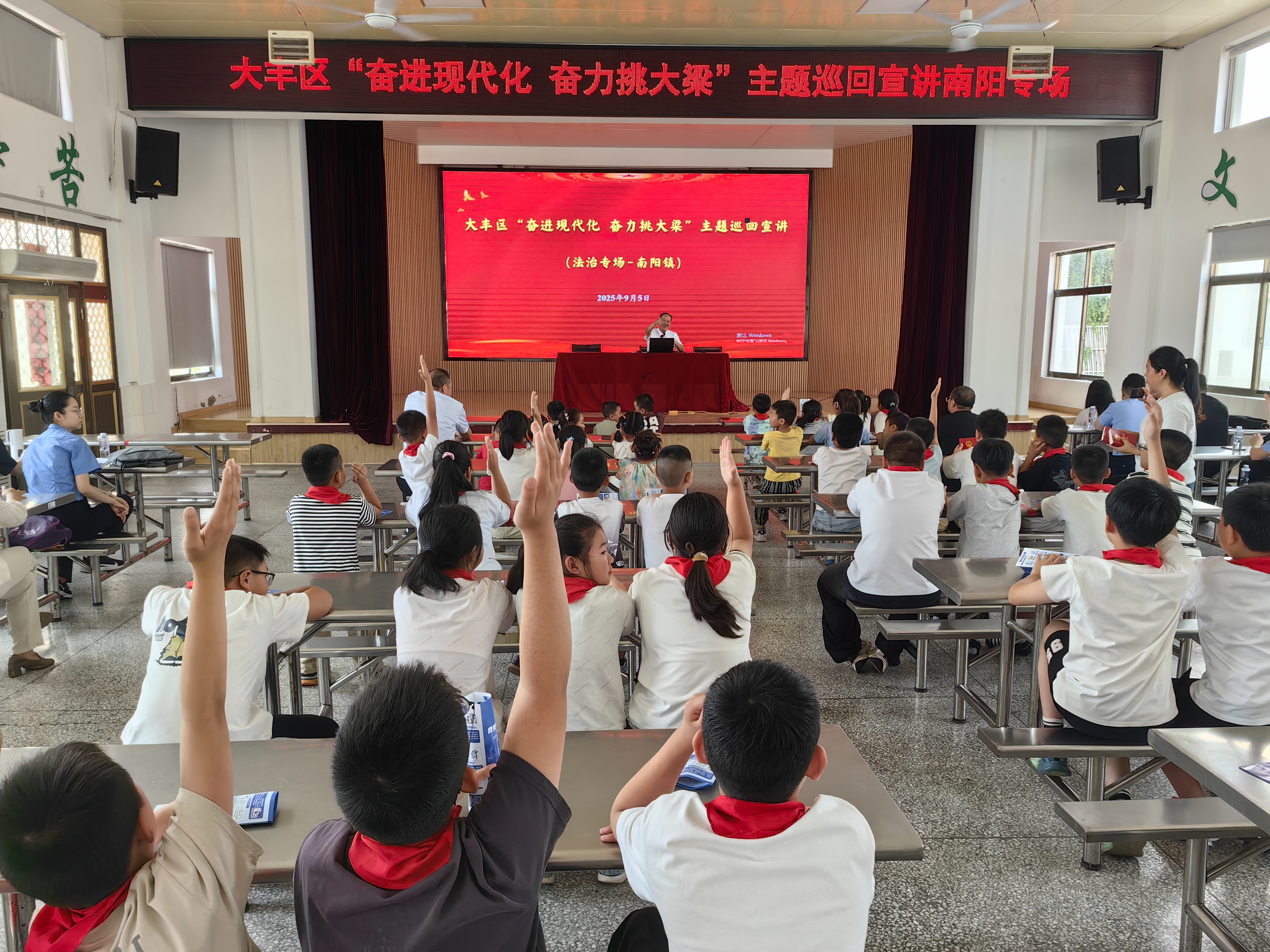 9月5日,由大丰区委宣传部主办,南阳镇新时代文明实践所、垦南小学、社区教育中心承办的“奋进现代化奋力挑大梁(法治专场)”主题宣讲活动在垦南小学行知剧场举行。各个单位的宣讲员齐上阵,为该校全体师生送上法治大餐,点亮学生成长路。(侍文 杨军 董晓娟)