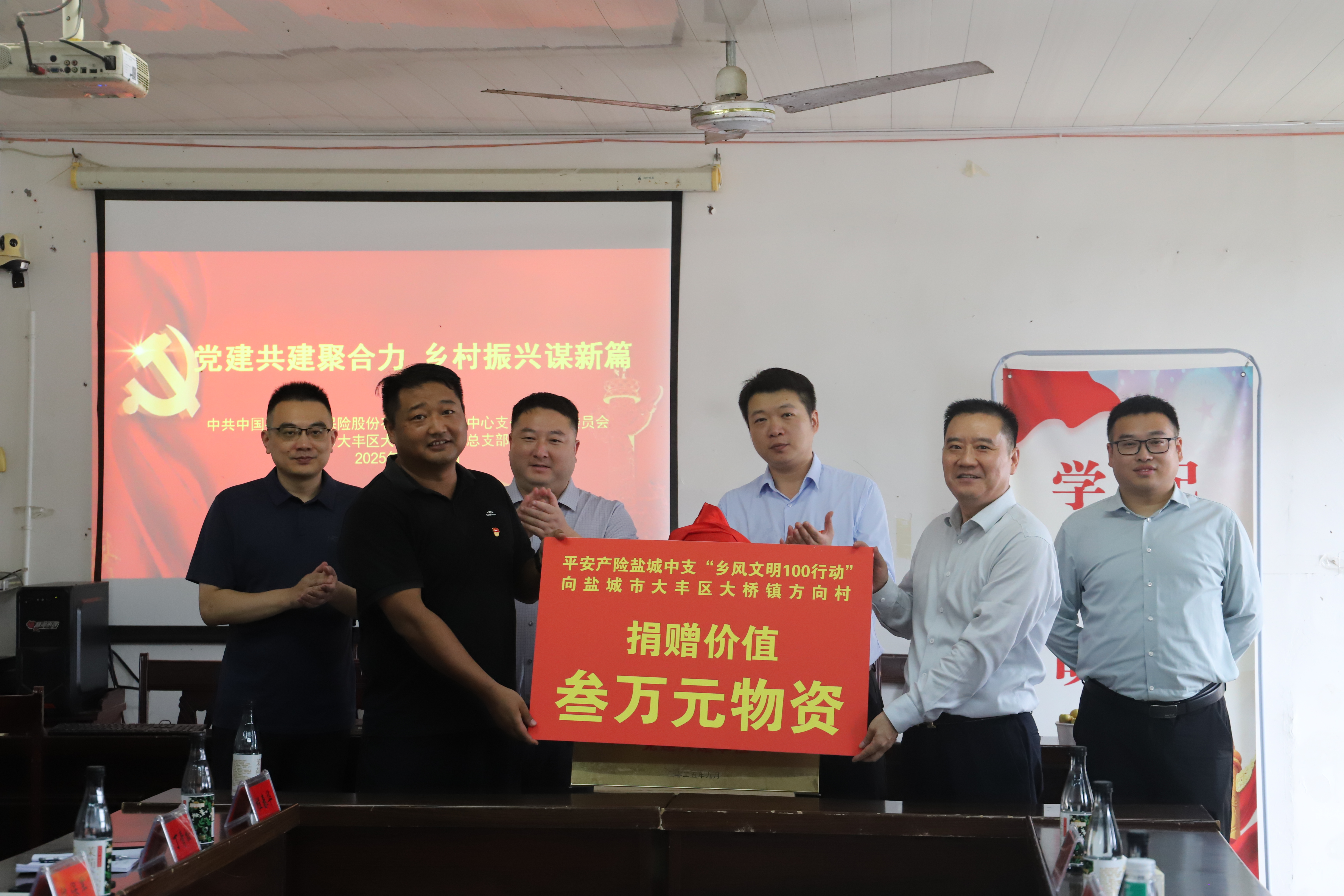 党建共建聚合力,银村携手助振兴。为深化政企党建融合实效,凝聚高质量发展合力,切实服务民生福祉,9月8日下午,大丰区大桥镇方向村与平安产险盐城中心支公司党建共建活动在方向村举行。平安产险盐城中心支公司总经理傅博、大丰支公司负责人陆兵,大桥镇党委书记韦峰、镇长周锐进,以及大丰农险经理、大桥镇农业副镇长、宣委、农险负责人、农办副主任,方向村“两委”成员、党员代表等共同出席活动,为银村合作、助力乡村振兴按下“加速键”。