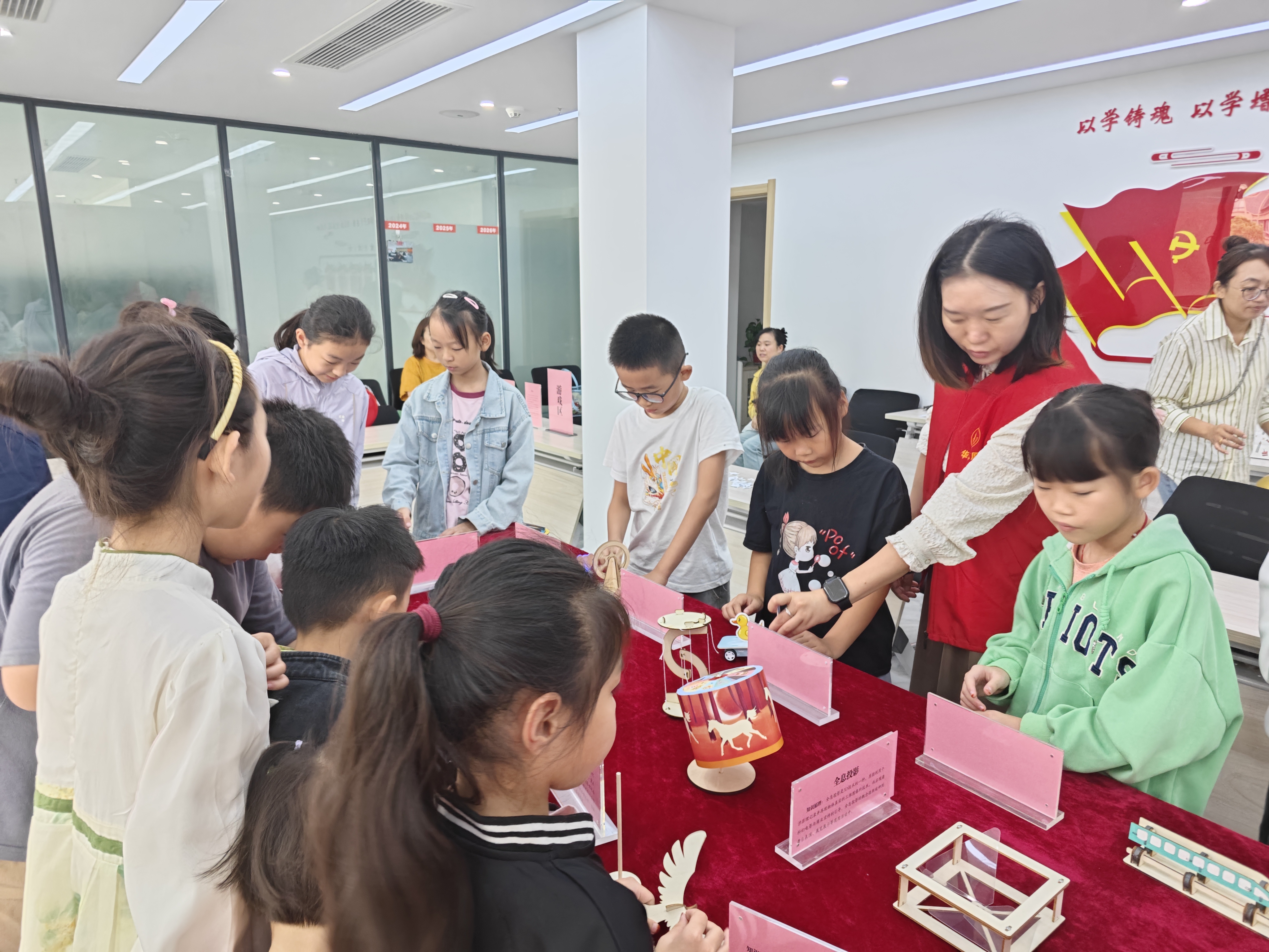 “哇!纸屑真的被气球吸住了!”活动中老师以讲解“摩擦起电”原理引出活动主题,当孩子们用摩擦后的气球吸引纸屑时,神奇的现象瞬间点燃了孩子们对科学的好奇心。随后,孩子们穿梭于科学小作品展区,人造卫星模型、磁悬浮列车等精致展品令人目不暇接,孩子们忍不住上手触摸,感受着科学的温度。