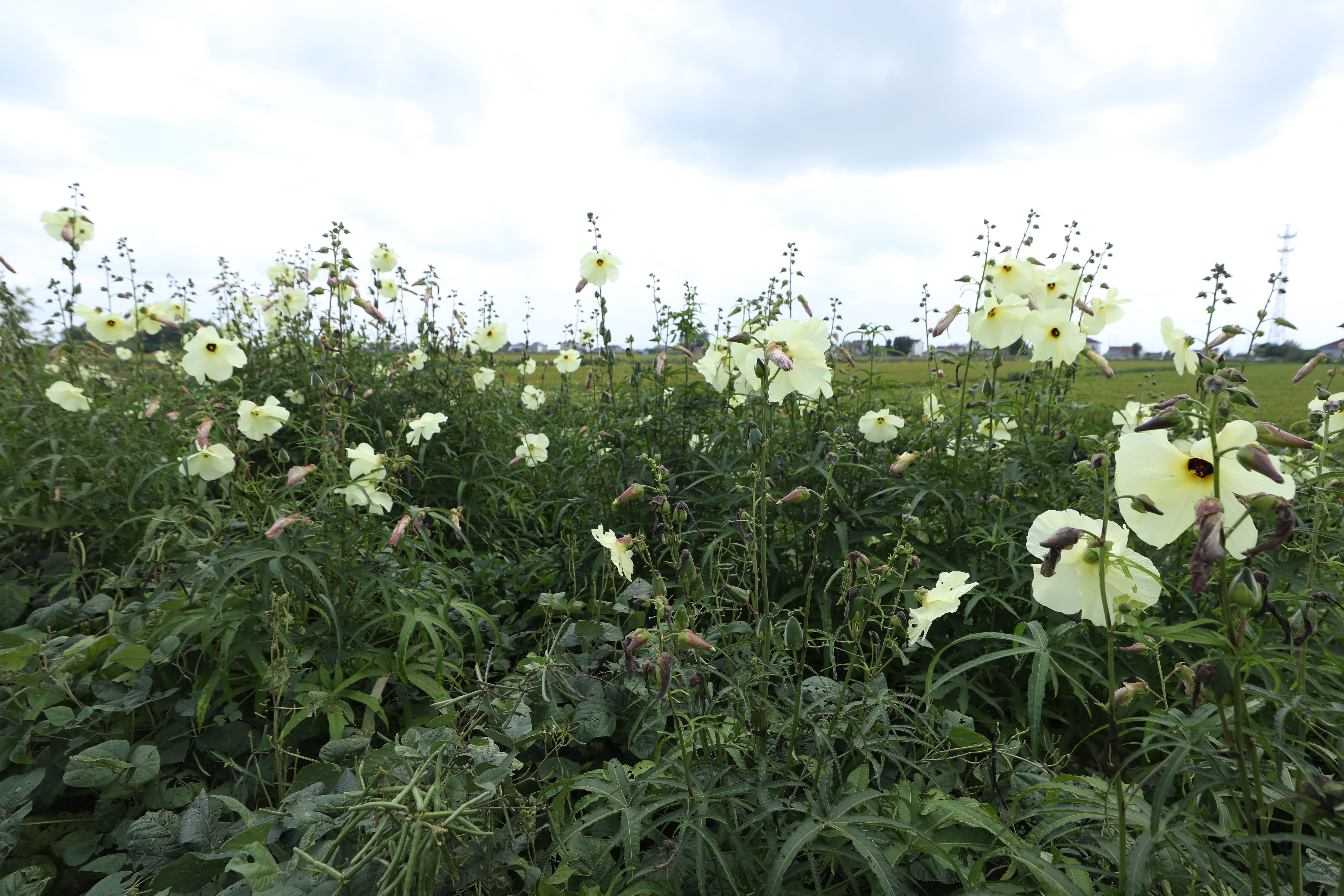 秋分时节,黄蜀葵进入盛花期。9月23日,大丰区草堰镇成文村黄蜀葵与大豆套种种植地,吸引人们驻足观赏这一丰收盛景。连日来,淡黄色的黄蜀葵花竞相绽放,田间一派丰收景象。