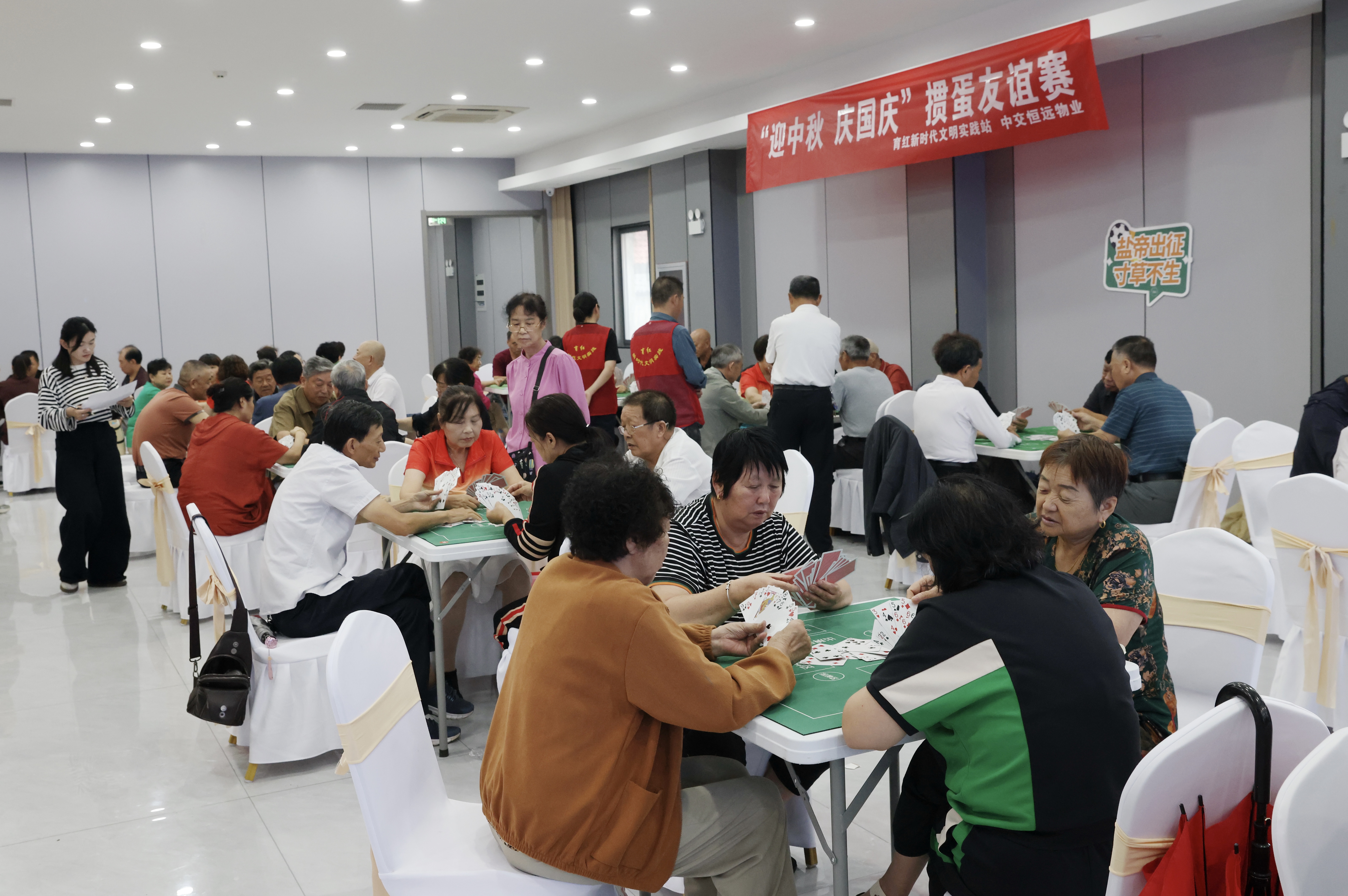 9月26日下午,大丰区大中街道育红社区与中交恒远物业公司联合举办“迎中秋庆国庆”掼蛋友谊赛。活动吸引了120多名居民参赛,牌桌上选手默契配合、冷静博弈,赛场下邻里交流欢笑不断。经过多轮比拼,3组6位选手分获冠、亚、季军,社区和物业公司工作人员为获奖者送上实用礼品。此次比赛不仅丰富了居民生活,还搭建了邻里互动平台,进一步拉近社区与居民、居民与居民间的距离,为构建和谐社区注入活力。(方勇 花惠娟)
