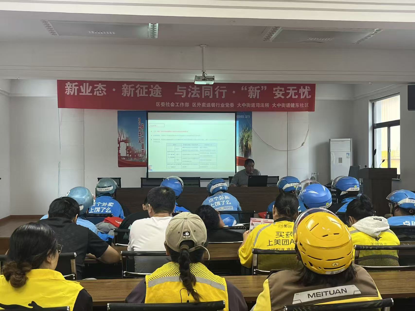 一堂培训解决“维权难”,赋能职业发展护权益。面对工作环境的艰苦,劳动关系不确定,合法权益有时难以得到有效保障,使许多灵活就业群体包括外卖骑手在内,面临着更深层次的挑战。健东社区意识到,在提供基础服务的同时,更需要帮助他们提升自我保护意识和能力。为此,健东社区充分利用“职业技术夜校”这一平台,创造性地为外卖骑手群体分批分类开设法律知识专题培训课程。课程内容紧紧围绕小哥骑手的实际需要,聘请专业律师或法律工作者,用浅显易懂的语言,重点讲解劳动合同签订、工伤保险认定、交通事故处理、薪酬纠纷维权、消费者权益保护以及食品卫生安全等法律法规知识。课堂上,讲师们不仅进行条文解释,还结合真实案例进行分析,并设置互动答疑环节,针对骑手提出的具体问题进行耐心解答。“以前遇到扣款不合理或者派单争议,很多时候不知道该怎么办,只能自己生闷气。听了社区的普法课,明白了不少法律常识,知道了哪些是自己的权利,遇到问题该找哪些部门,心里有底气了。这种培训非常实用,对我们帮助太大了。”参加首期培训的骑手老张高兴地说。健东社区法律培训课的开设,犹如为外卖骑手送上了一个“法律盾牌”,帮助他们从“被动应对”向“主动维权”转变,有效增强了他们抵御风险的能力,也为构建更加规范、和谐的用工环境贡献了社区力量。