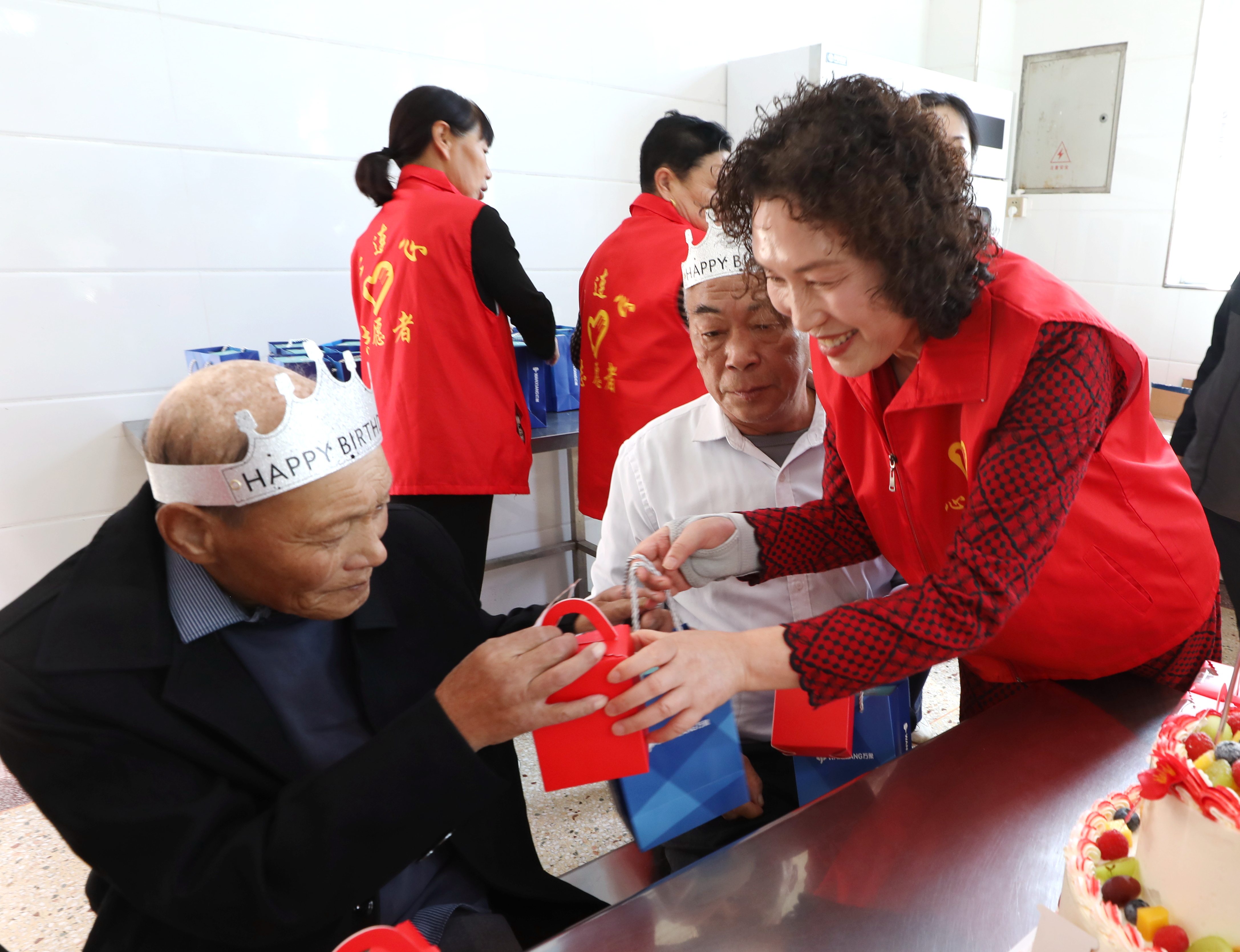 今年是陈连芳与老人爱心相伴的第27个年头,凭借数十年如一日的暖心付出,她早已被老人们亲切地唤作“女儿”。此前,得知草堰镇敬老院有5位老人的生日恰逢九月,陈连芳当即决定为老人们筹办一场特别的生日宴——不仅定制了香甜的生日蛋糕,还特意设计了印有“健康长寿晚年幸福”字样的保温杯,让关怀更显贴心。