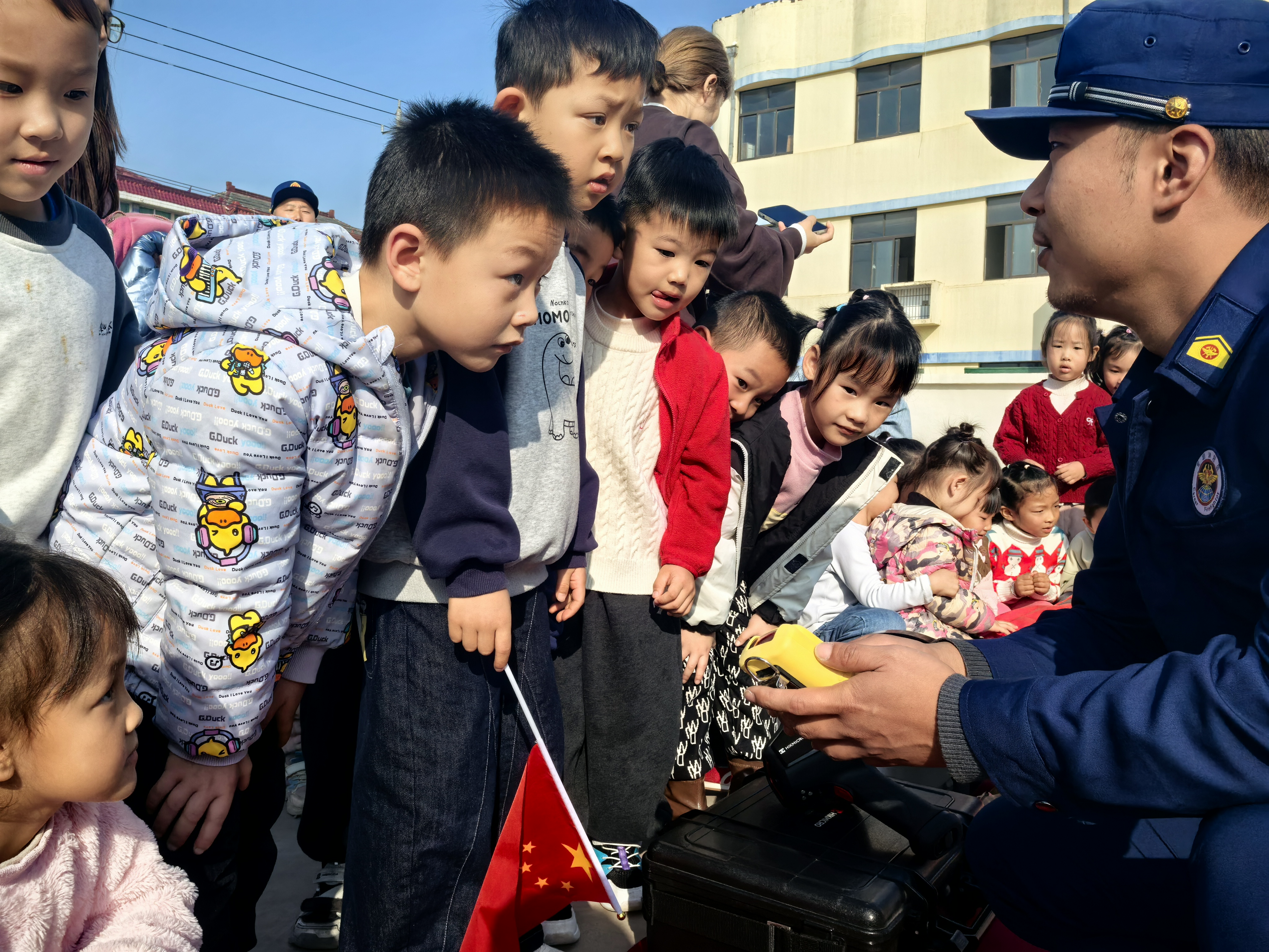 活动伊始,消防员化身“安全导师”,以“提问+讲解”的生动形式,向小朋友们介绍消防站日常职责、出警流程及24小时值守模式,让孩子们知道“消防员叔叔不仅会灭火,还会救被困的人、帮大家解决困难”。同时结合幼儿园生活场景,用“小火花不能玩”“着火要找出口”等简单好记的口诀,将消防安全的重要性悄悄植入孩子们心中。
