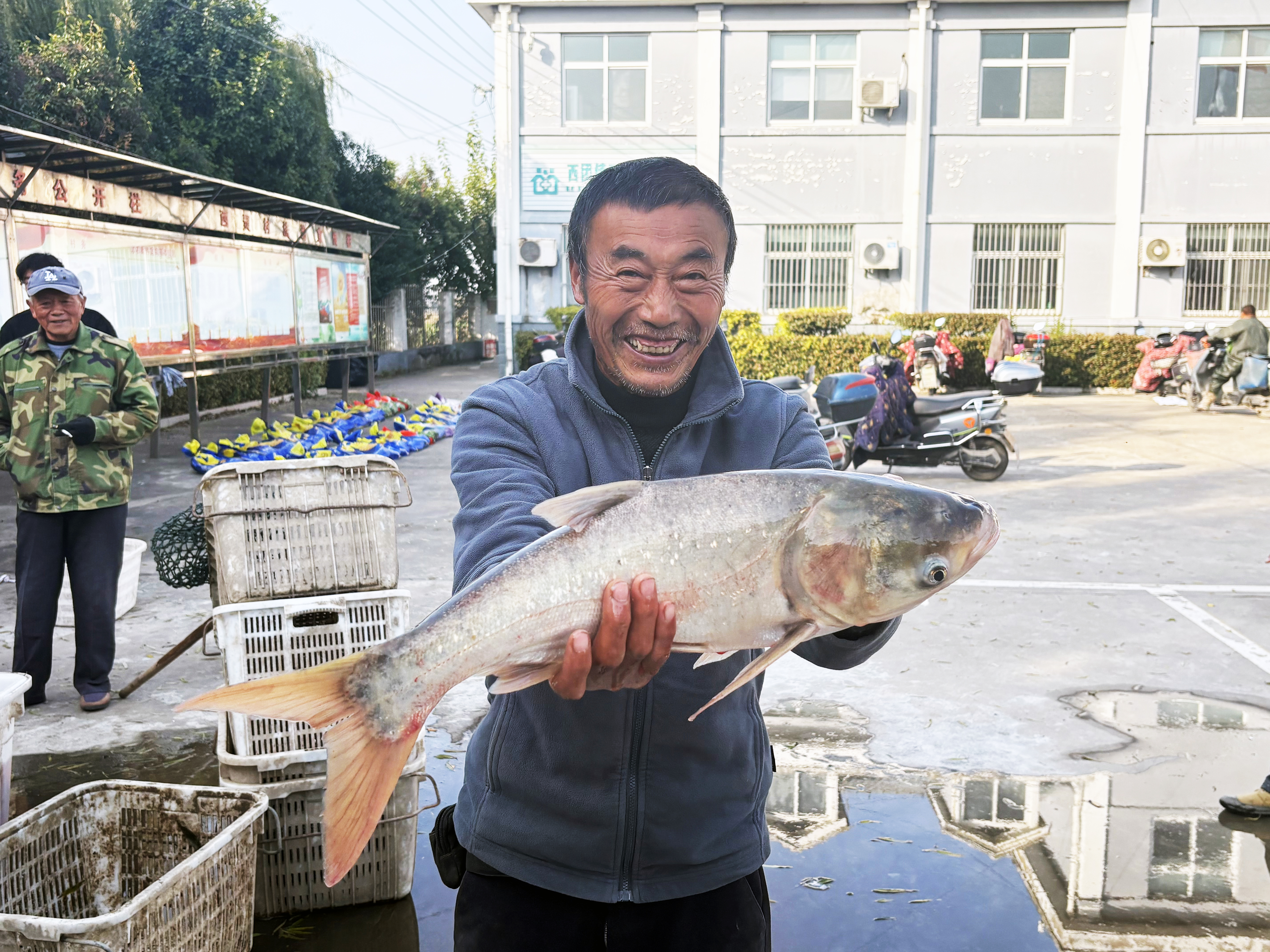 “这些鱼真肥!”“你看我这条,比你的还大!”村民们提着分到的鱼互相展示,笑语不断。11月24日,大丰区西团镇西灵村村民们手中提着一条条被捕捞上岸的鱼儿,勾勒出一幅“鱼肥人乐”的温暖乡村画卷。