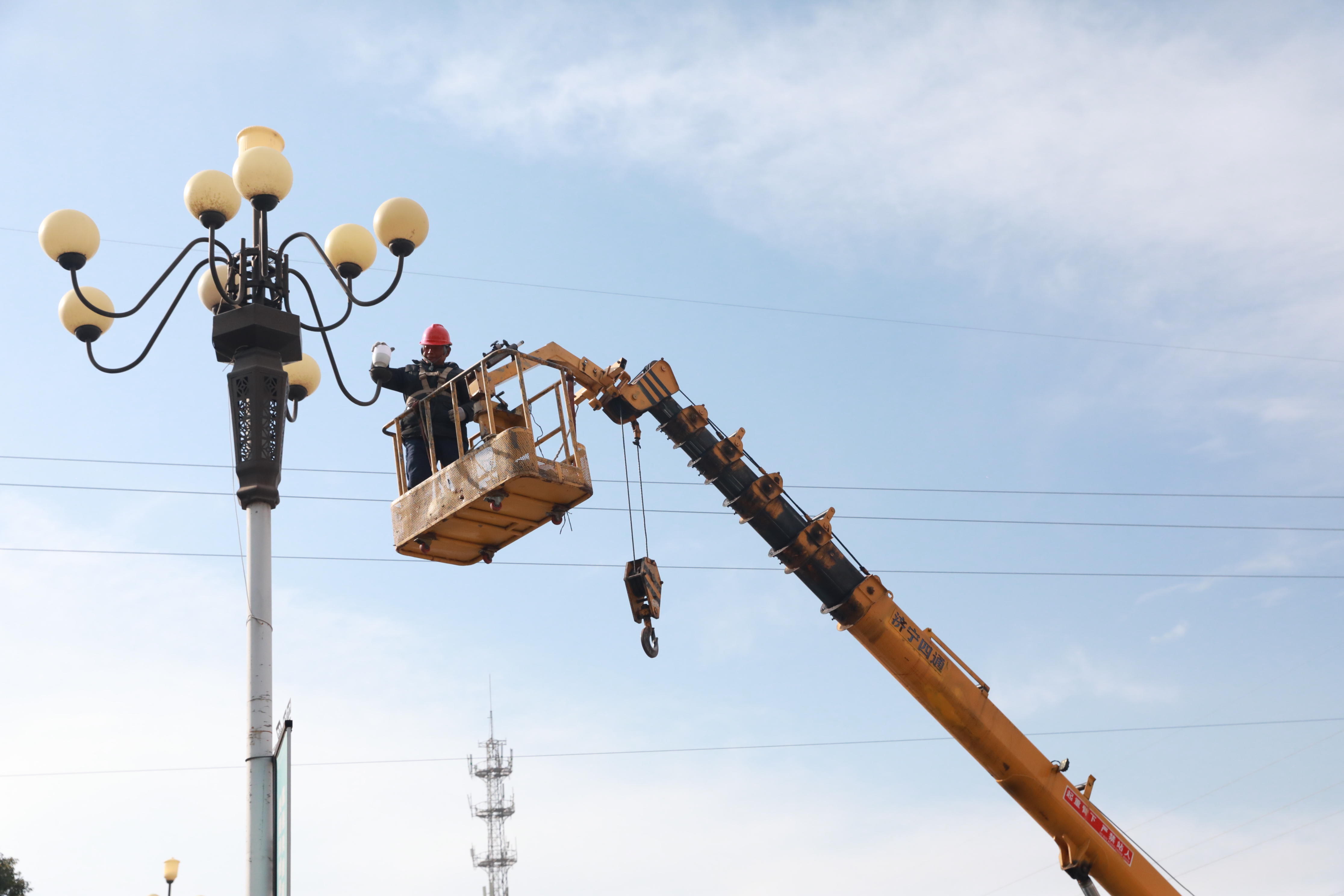 1月9日,电力施工人员在盐城市大丰区白驹镇大白路开展路灯设施检修与更换作业。连日来,为保障城乡居民夜间出行安全、优化集镇夜间照明环境,白驹镇联合供电、村镇建设、市政等部门,对辖区内路灯开展集中排查检修工作,对照明效果差、存在安全隐患的灯盏、灯杆及线路进行统一更换。(董汝涛)