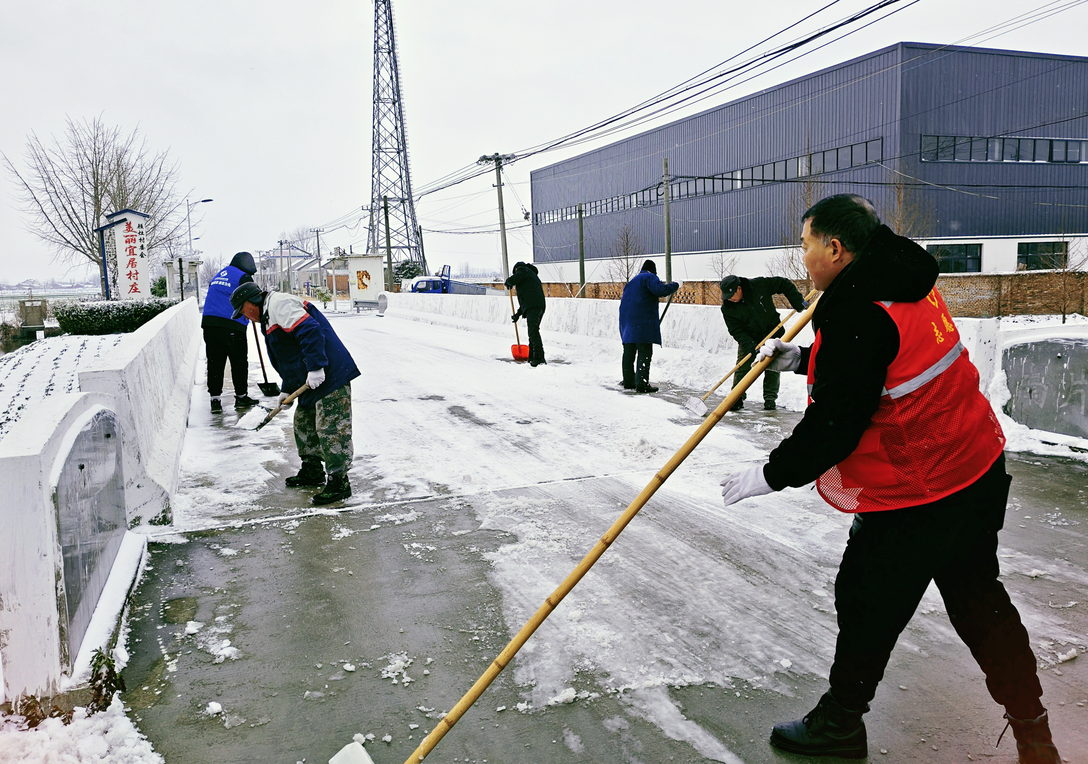 凛冽寒风中,党员志愿者身着红马甲、手持工具化身“破冰先锋”。班子成员牵头包片,党员干部分段包干,弯腰挥铲破除坚冰、清扫残雪,红马甲与白雪相映,成为冬日里一道动人风景。
