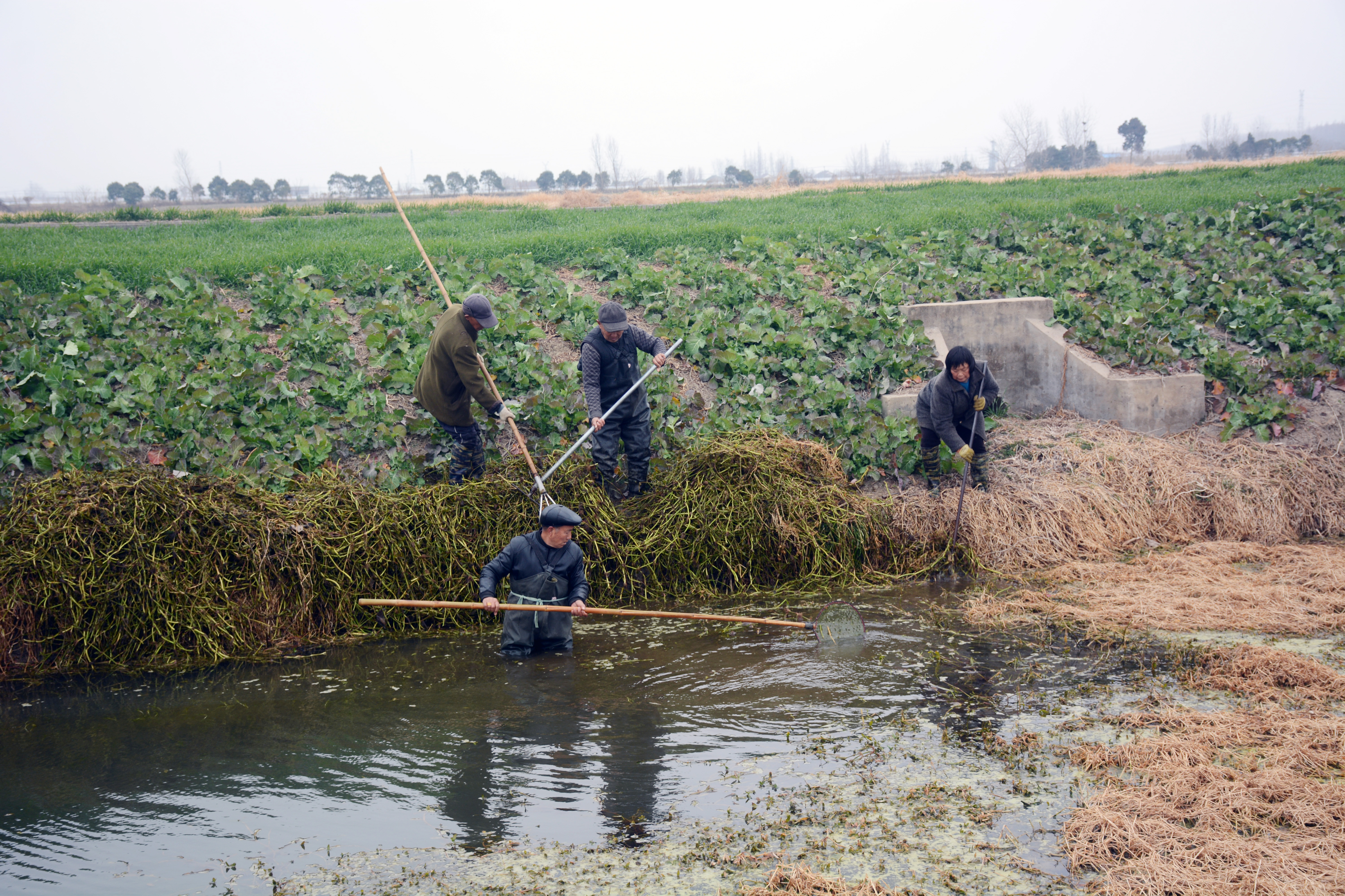 1月17日,在大丰区草堰镇合新村33总沟上,村民们正在全力打捞水面水花生、水浮莲等杂草杂物。为进一步改善河道生态环境,打造水清岸绿的宜居家园,合新村组织村民开展河道专项保洁行动。大家不畏严寒,身穿水裤、脚蹬高筒靴,手持拉耙、草钩等工具,重点对水花生、水浮莲等水生杂草及各类垃圾进行全面清除,不仅有效改善了水域生态面貌,更以实际行动擦亮了乡村振兴的生态底色,为群众喜迎新春佳节营造了干净整洁、舒心宜人的人居环境。(董华鸿)