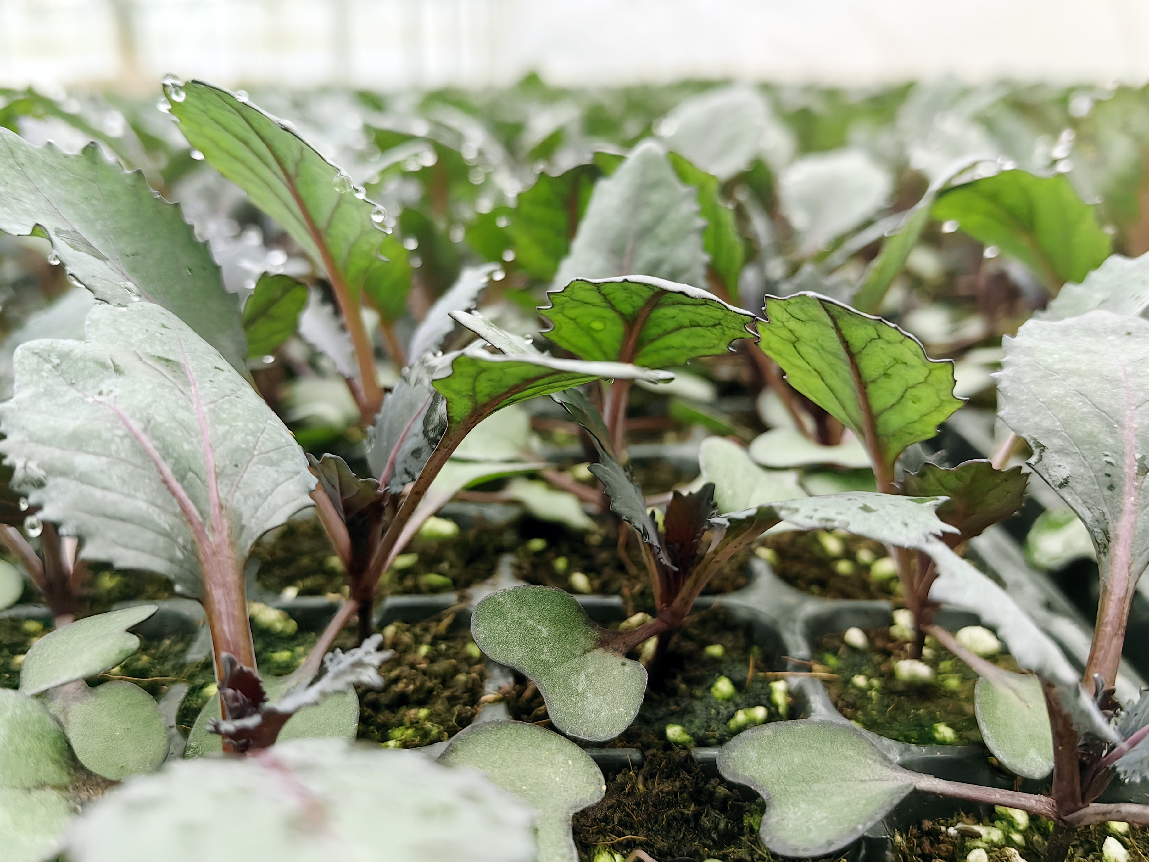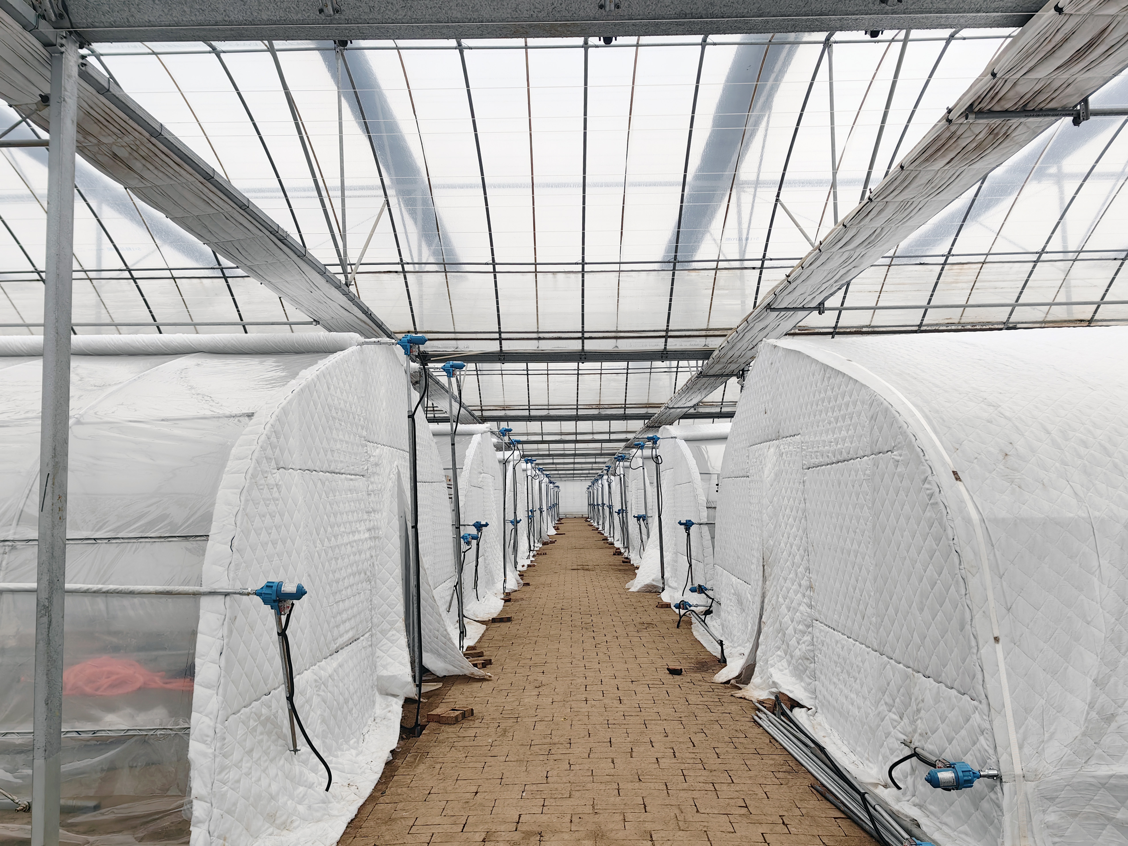 “我们采用了‘智能调控+物理防护’双重保障,室内温度一般稳定在22℃左右,同时启用了由双层保温棉被自动收放装置、双层膜和智能空调构成的保温结构,即便天气再寒冷,幼苗们依然能享受到‘恒温呵护’。”韩鸽一边躬身察看幼苗长势,一边继续介绍,“温室内还配备了水肥一体化灌溉系统、智能通风设备和遮阳网,温度达标了,湿度控制也很关键,过干过湿都会影响幼苗根系发育。”