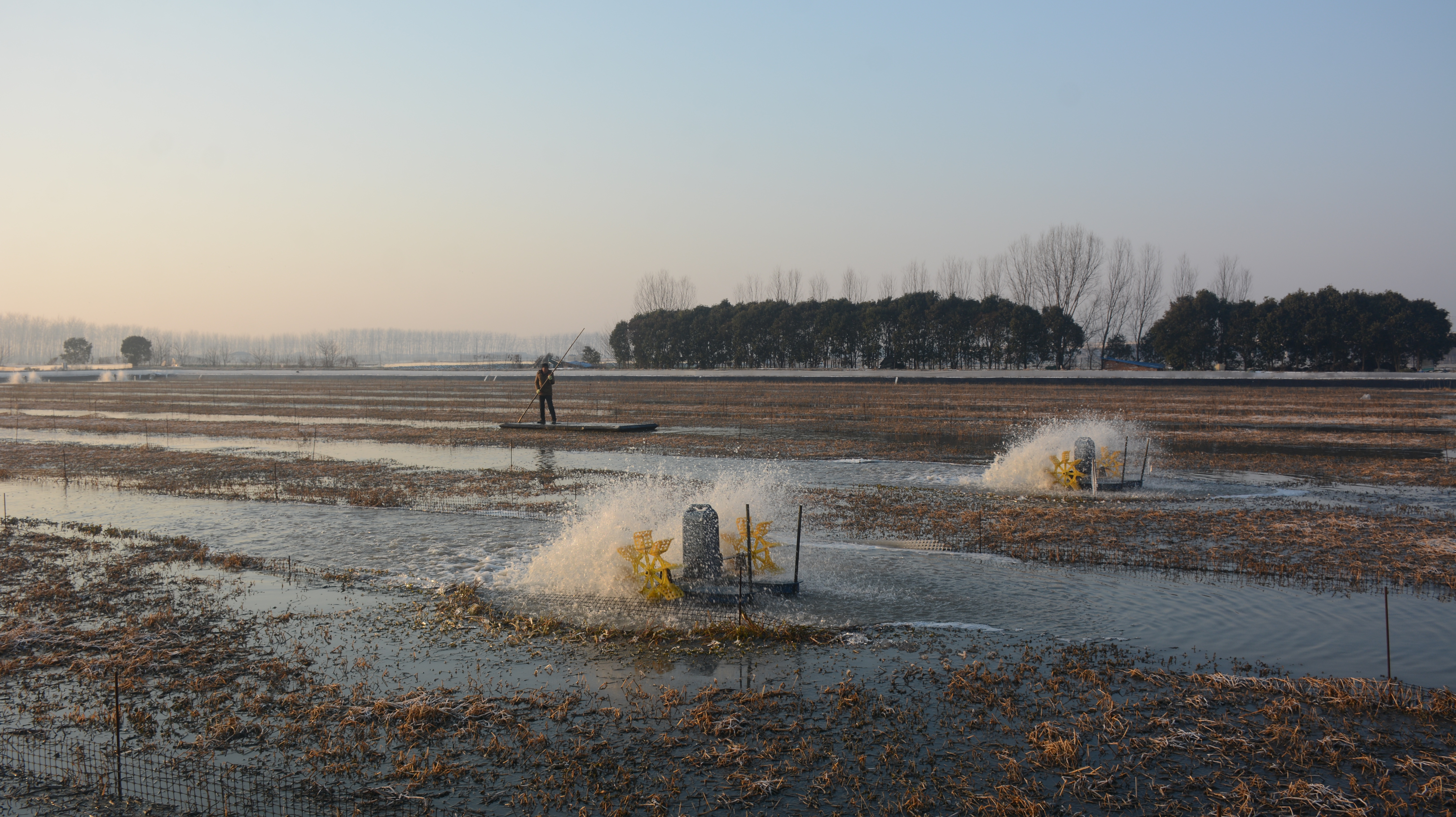 1月23日,大丰区草堰镇一处蟹苗培育塘内,叶轮式增氧机高速运转,强力搅动着塘水上下翻腾。这一科学管护举措,既有效提升了水体底层溶氧量,又能防止塘口结冰造成蟹苗缺氧,为蟹苗安全越冬、稳健生长保驾护航。(董华鸿)