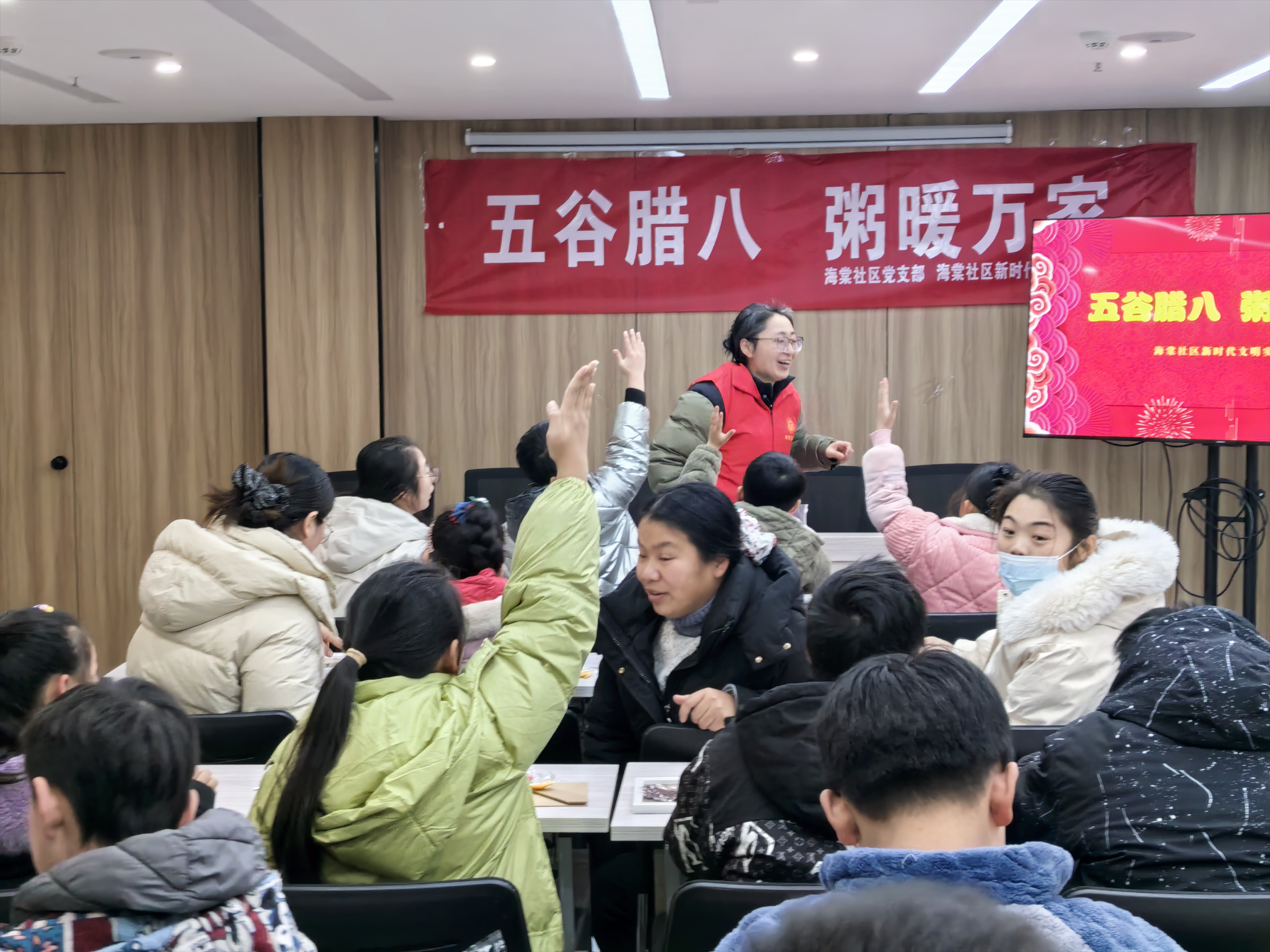 海棠社区负责人表示,此次腊八主题活动以“五谷”“腊八粥”为文化载体,不仅传承了传统民俗,更凝聚了社区温情。接下来,社区将继续以传统节日为契机,开展更多接地气、有温度的文化活动。(孙梓娟 张佳蕊)