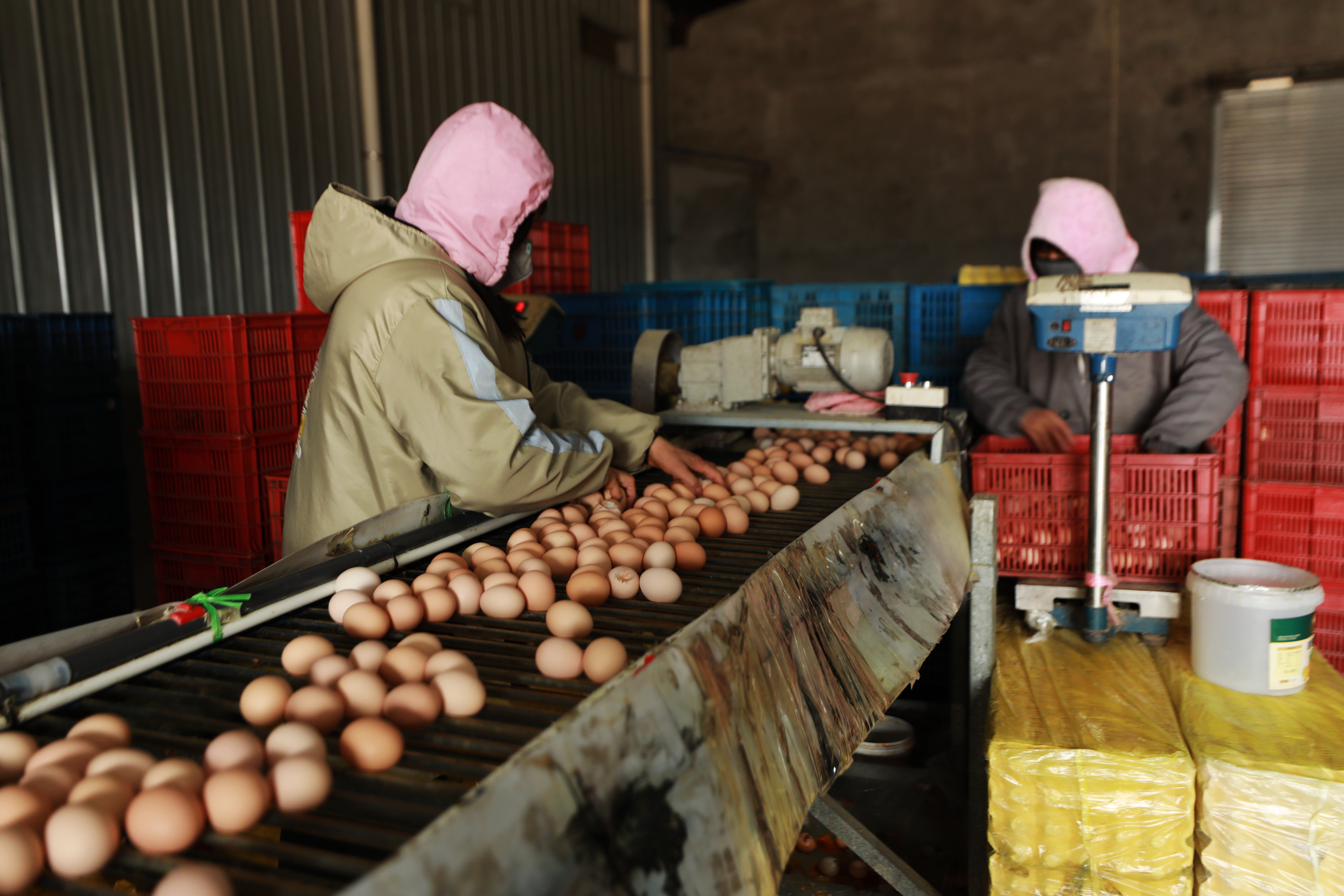 1月25日,大丰区草堰镇海银畜禽专业合作社内一派热火朝天的景象。工人们紧张有序地将刚产出的新鲜鸡蛋集中装箱、装车,及时外运供应市场,全力保障市民“菜篮子”供应,将新鲜蛋品及时端上千家万户的餐桌。