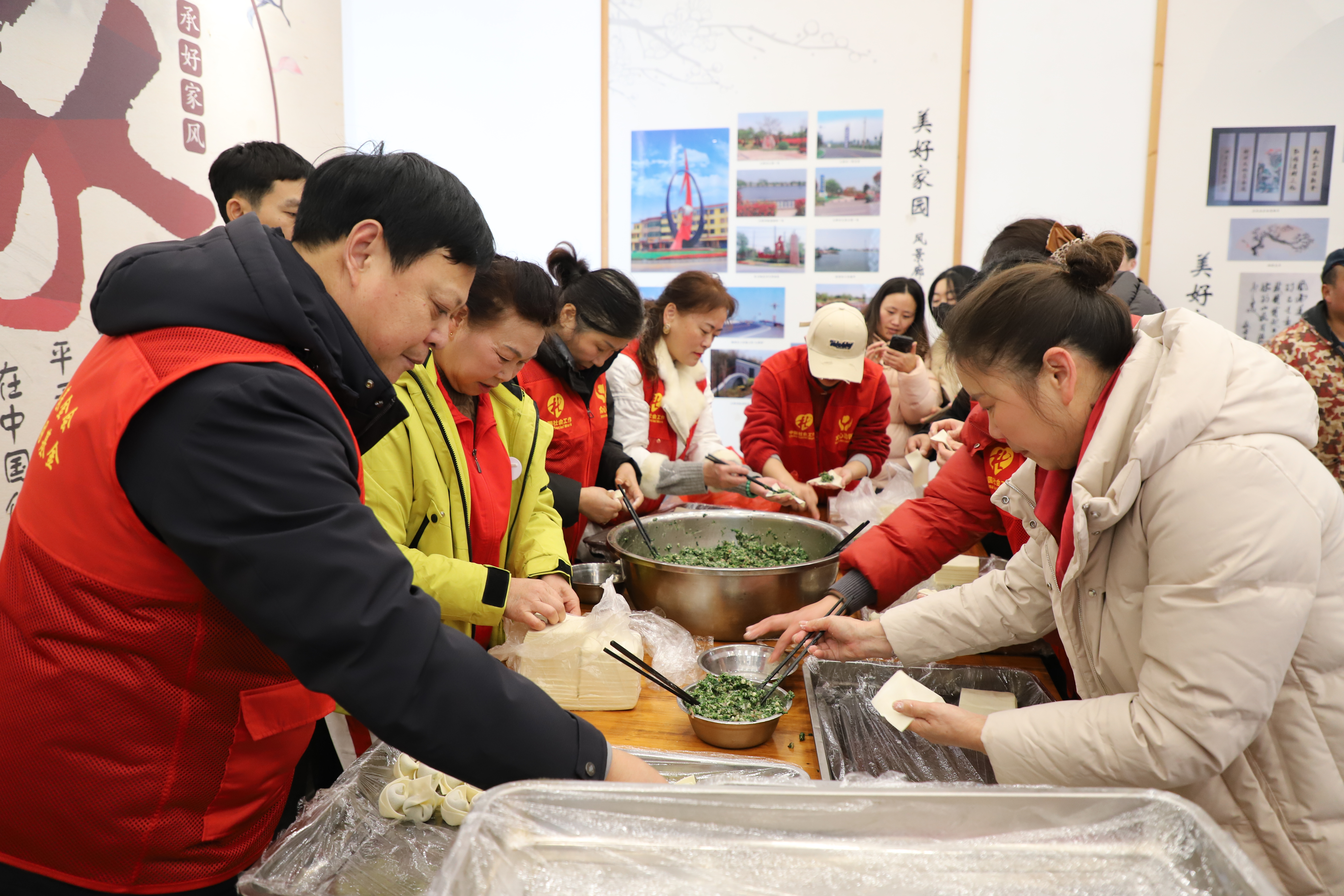 大礼堂内暖意融融。志愿者与受邀长者围坐一堂,揉面团、捏馅料、话家常,包水饺互动让冬日的寒冷消散无踪。老人们脸上洋溢着幸福的笑容,手中的水饺包裹着邻里温情与新春期许,现场氛围温馨和睦。