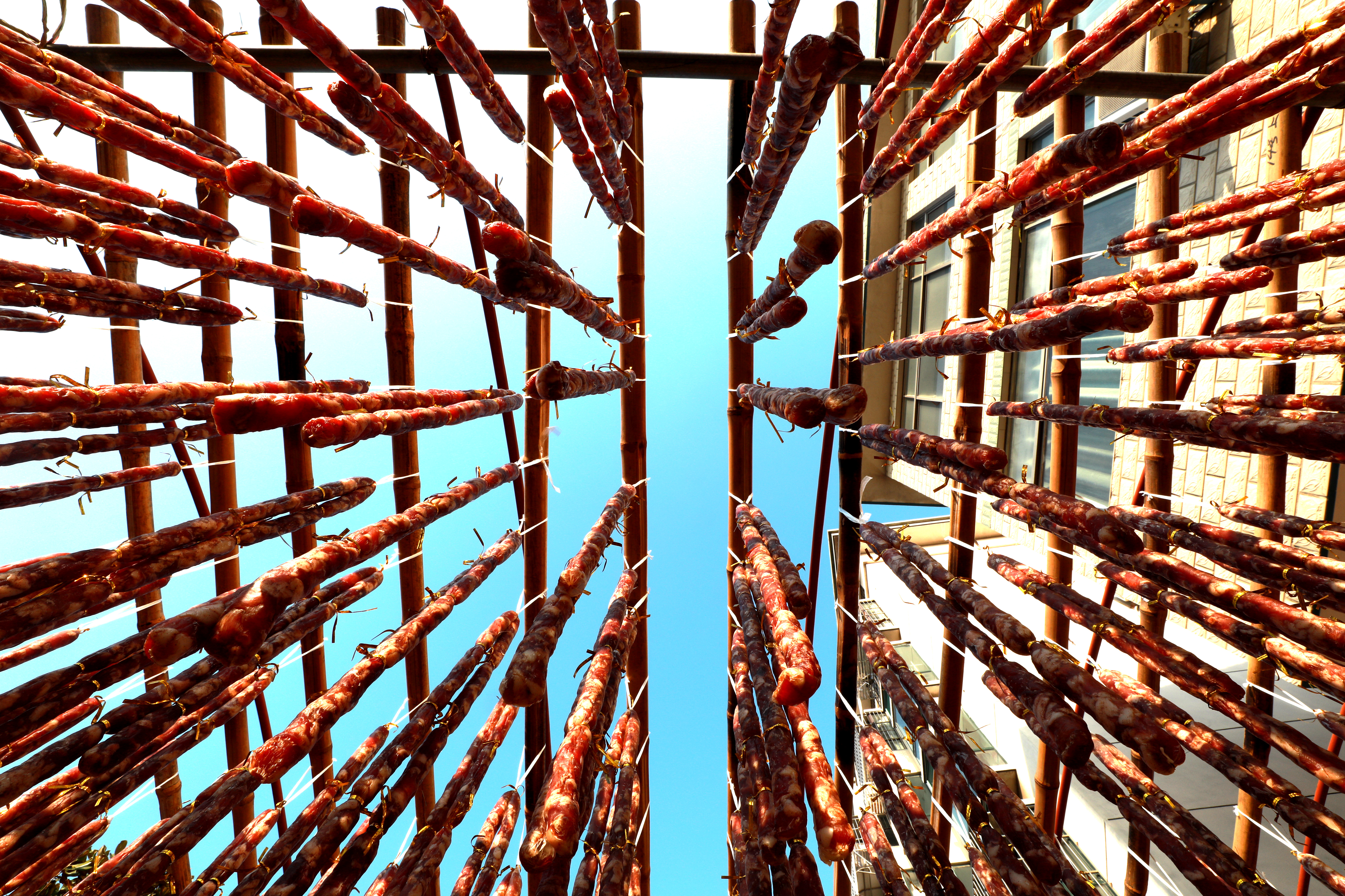 草堰香肠是以袁记香肠为代表的老字号,传承并发展袁记香肠的传统技艺,始终遵循“先阴干后慢晒”的古法工艺,确保香肠风味醇厚绵长。