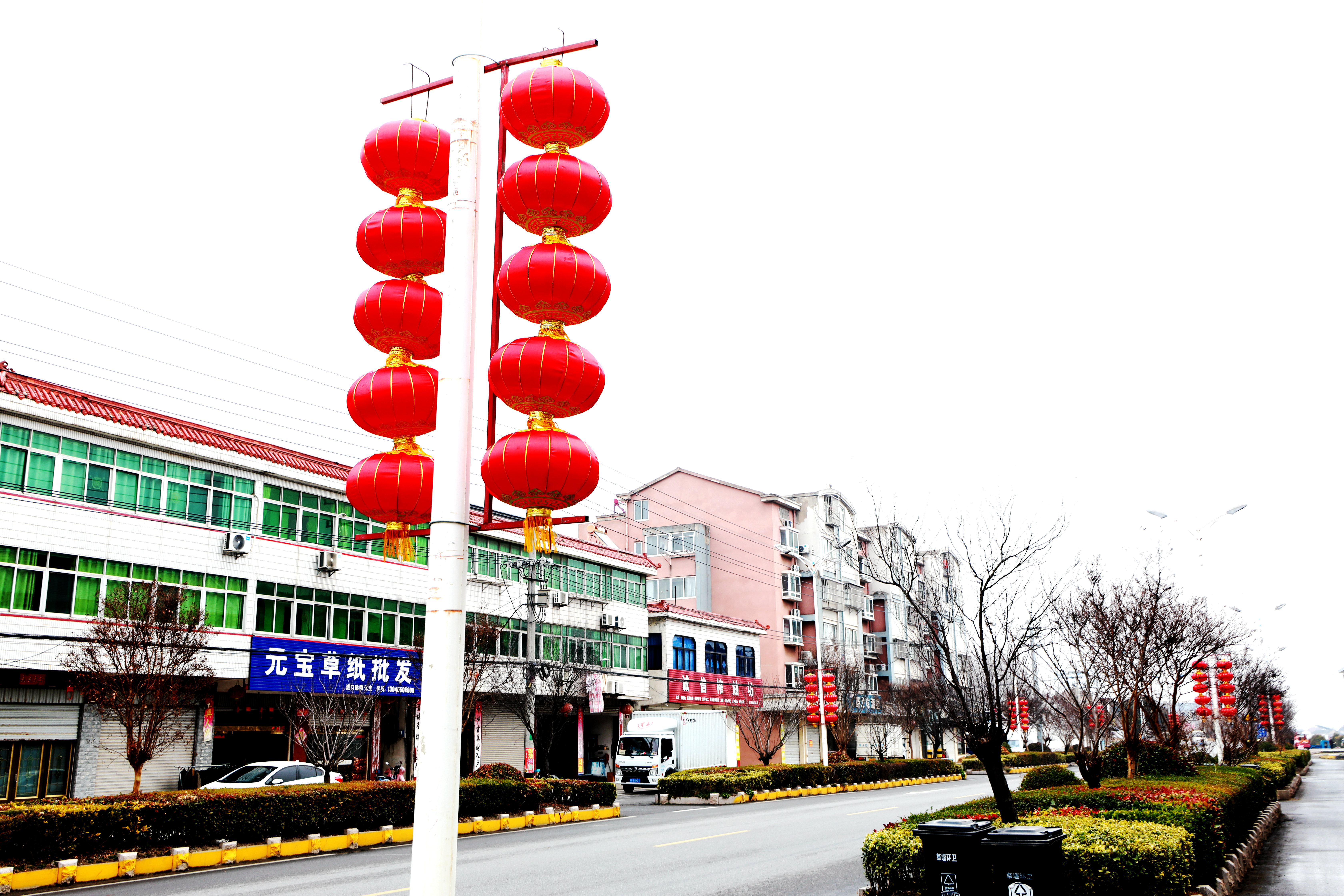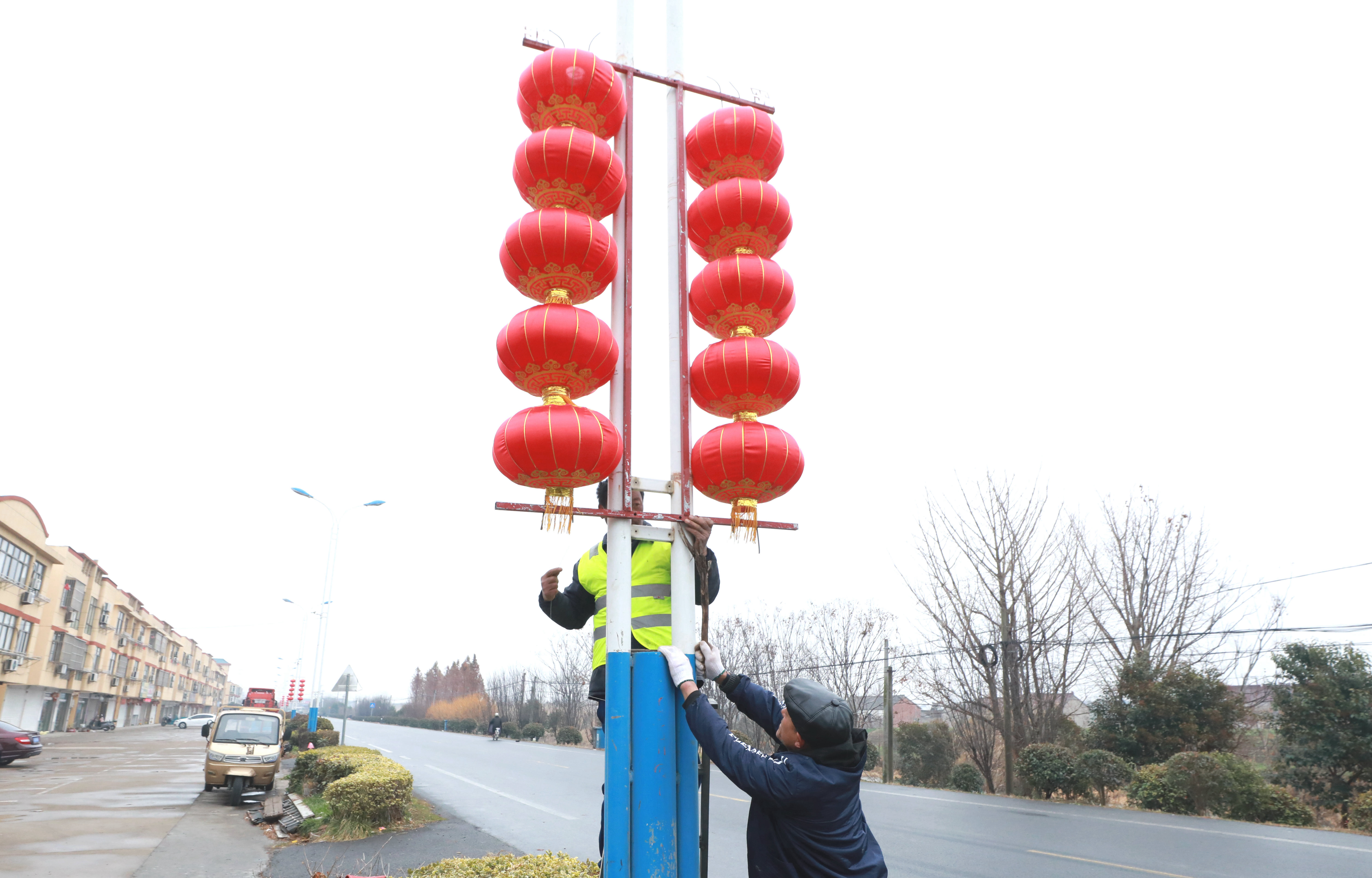 2月10日,大丰区草堰镇组织人员在道路沿线悬挂灯笼,营造浓烈喜庆氛围,迎接马年新春。(周汉明)