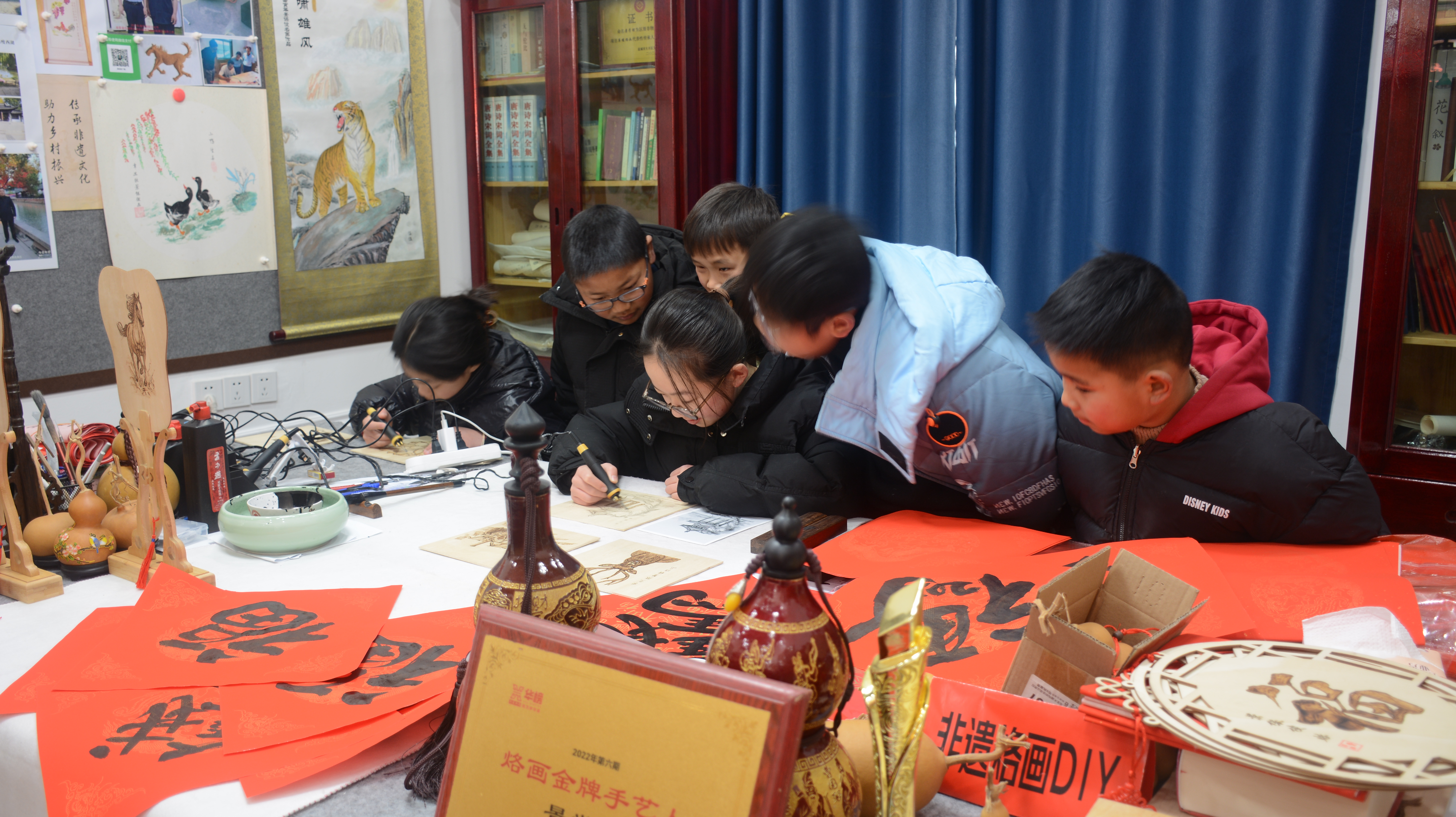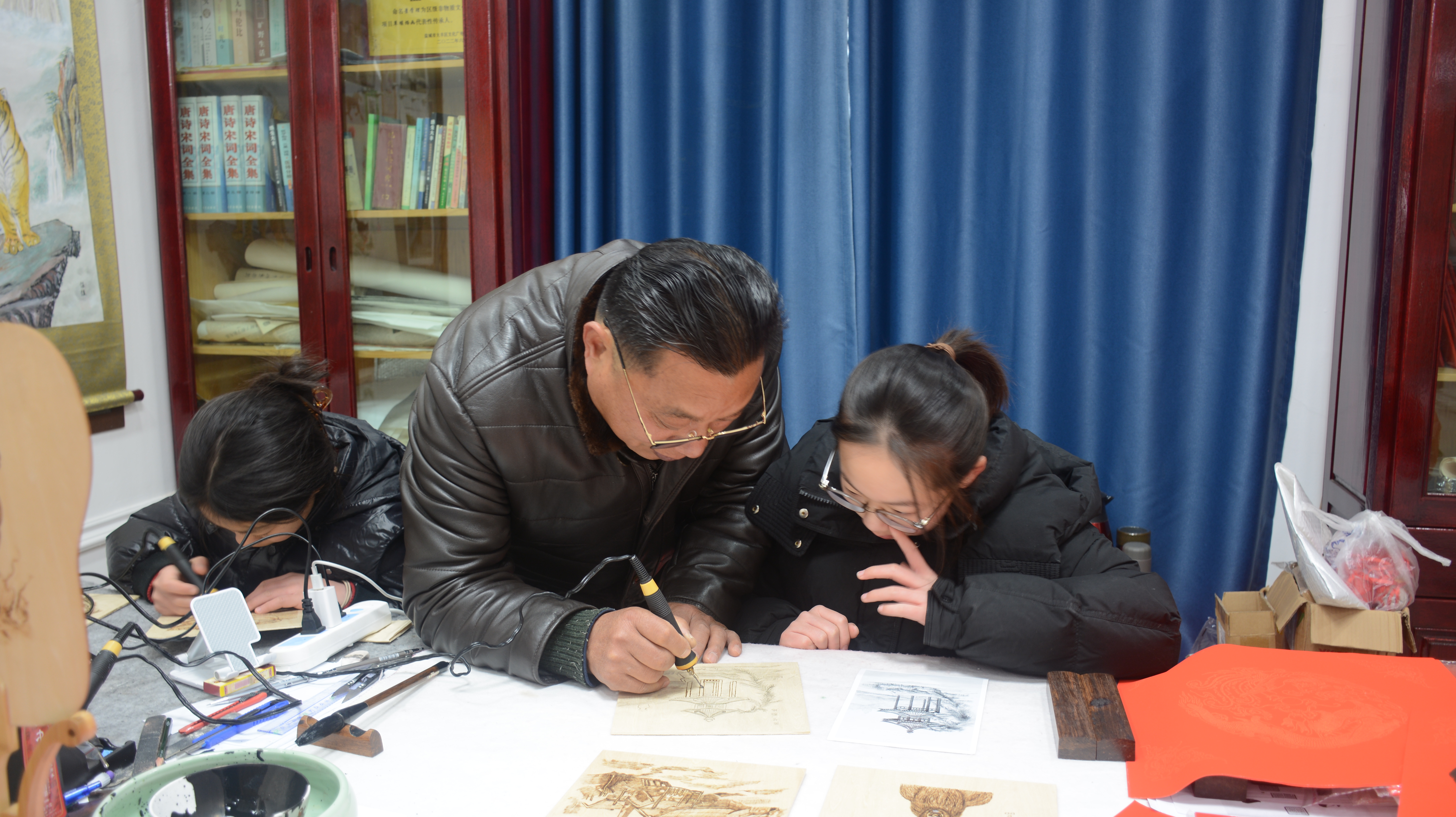 2月9日,位于大丰区草堰镇三渣小街的烙画非遗工作室迎来了一批特殊的学生——不同年级的学生齐聚于此,正聚精会神地学习一项极具特色的传统技艺——烙画。