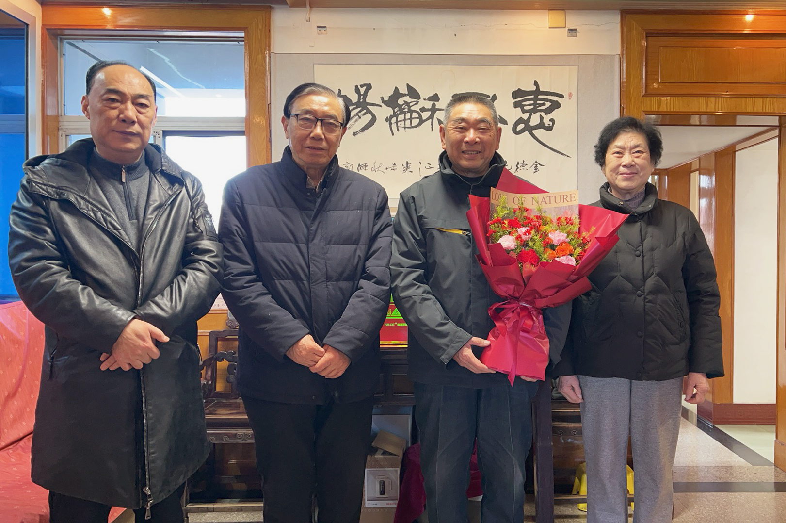 2月11日,大丰区关工委主任朱达丰和副主任郭治中、办公室主任刘汉英一行,专程来到草堰镇,走访慰问扎根基层关心下一代工作岗位26年的草堰镇关工委主任单金德,为他送上组织的关怀与新春的美好祝福。