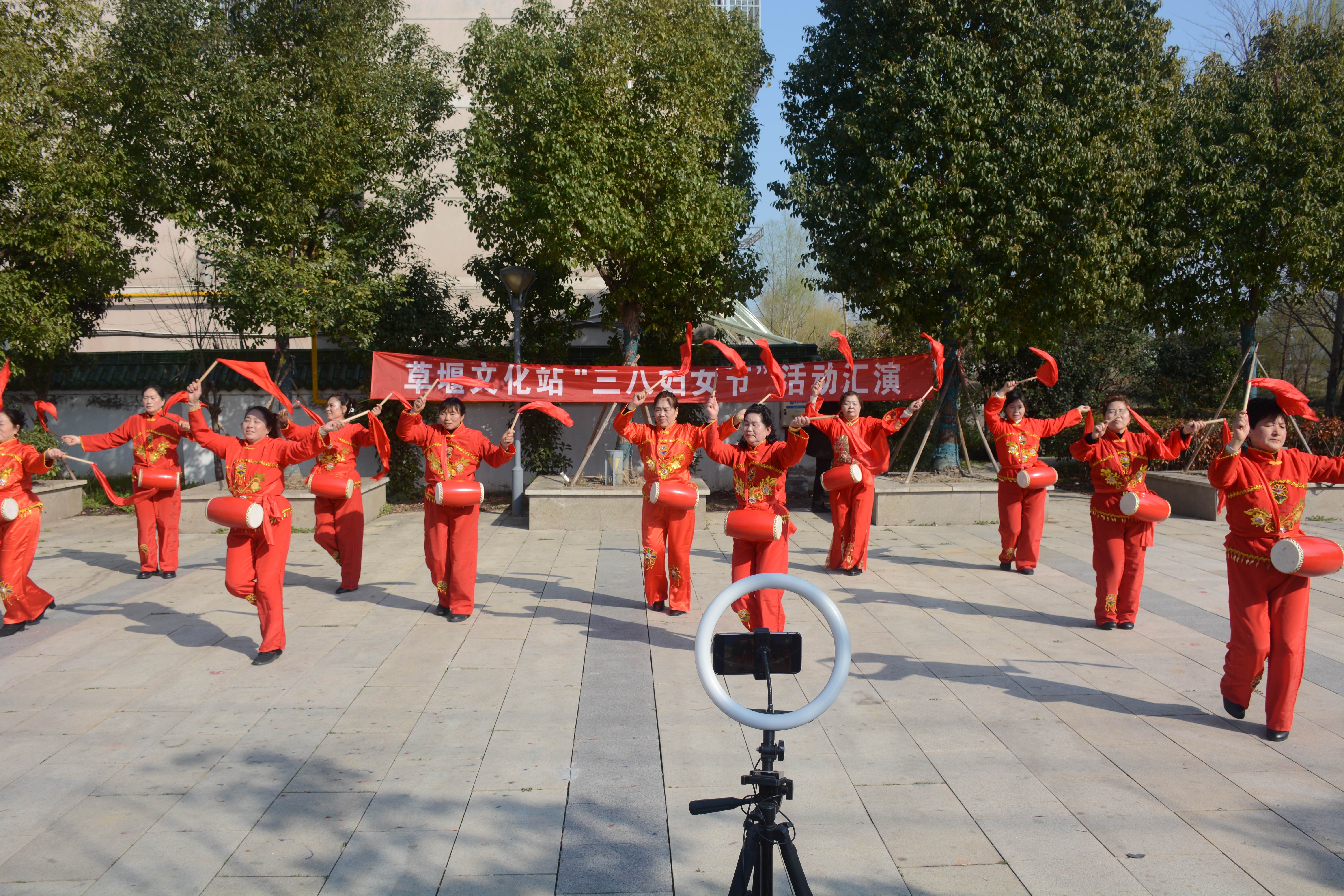 3月8日下午,大丰区草堰镇10余个村(居)的巾帼舞蹈队相聚金水门公园,用铿锵腰鼓、悠扬戏曲、灵动快板、欢腾歌舞等多样文艺形式,以自编自演、自娱自乐的质朴方式,共度了一个热闹的节日。(董华鸿)