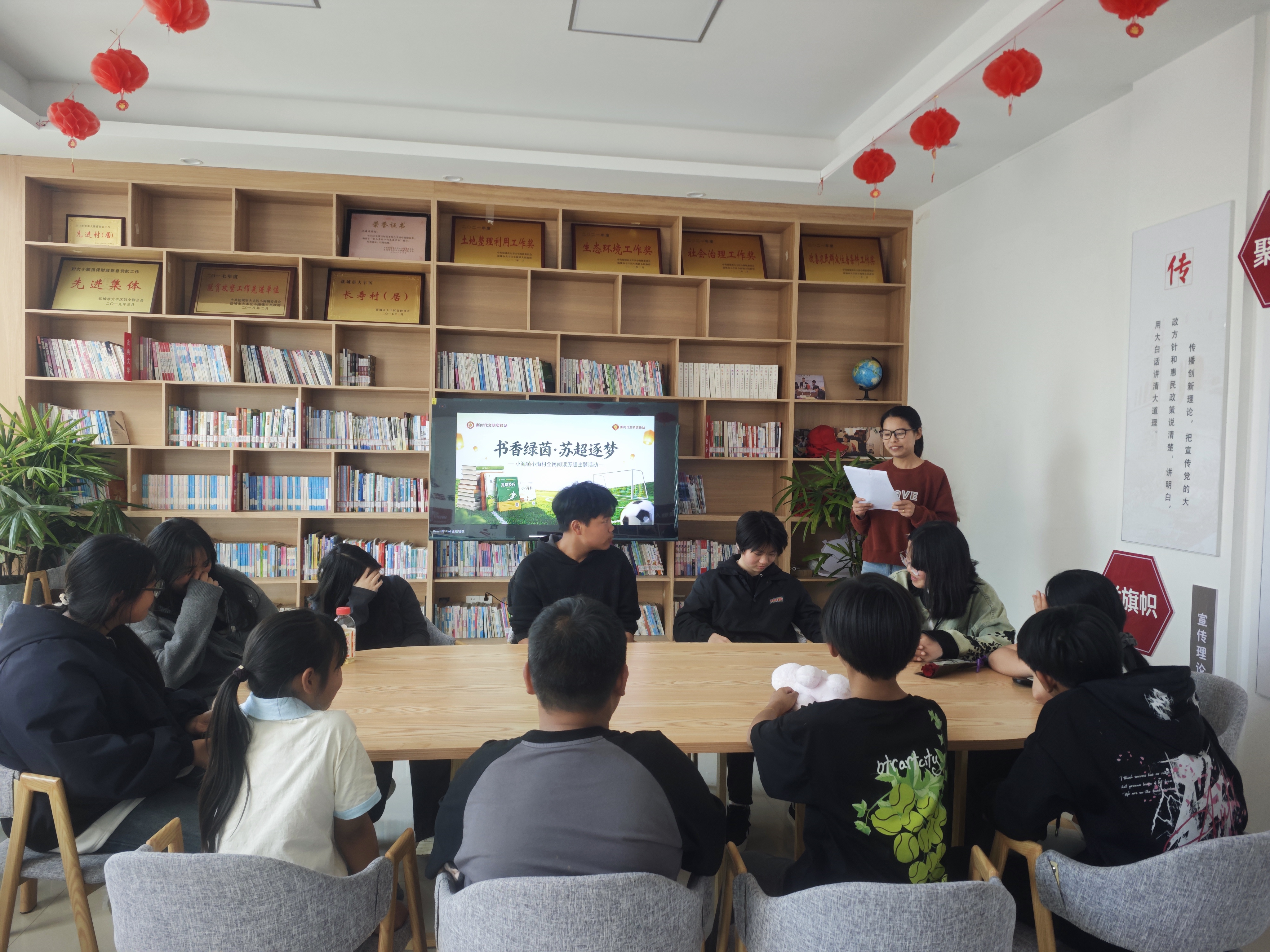 4月25日,大丰区小海镇小海村开展“书香绿茵·苏超逐梦”特色主题活动,创新融合全民阅读与“苏超”赛事热潮,积极探索“阅读+体育”的新时代文明实践新路径,让书香文化与体育活力在基层深度交融。