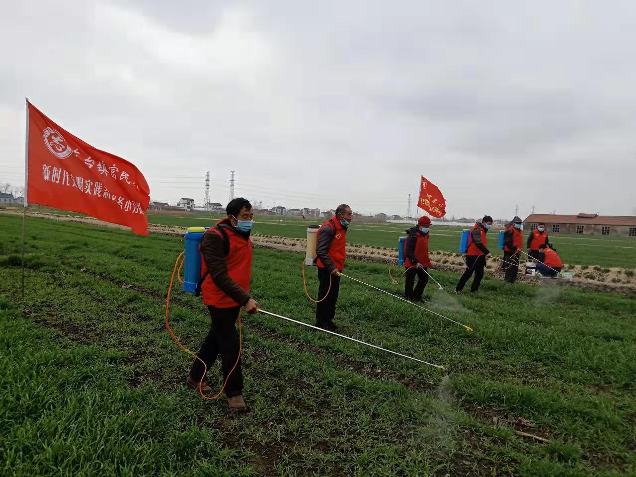 2月16日,东台市东台镇富民村“田头互助合作社”成员走进5组曹宝托家麦地里,对普施返青肥的小麦进行喷药除草,力保夏熟丰收。据了解,该村新时代文明实践站组织留守人员成立“田头互助合作社”,对小田作物种植的农户开展联户互助活动,重点进行作物追肥、喷药、理墒等田间管理,腾出富余劳力走出去到家门口园区企业打工,达到了"田头互助合作、种田打工双赢″的效果。(邹鹏安 周 霞)