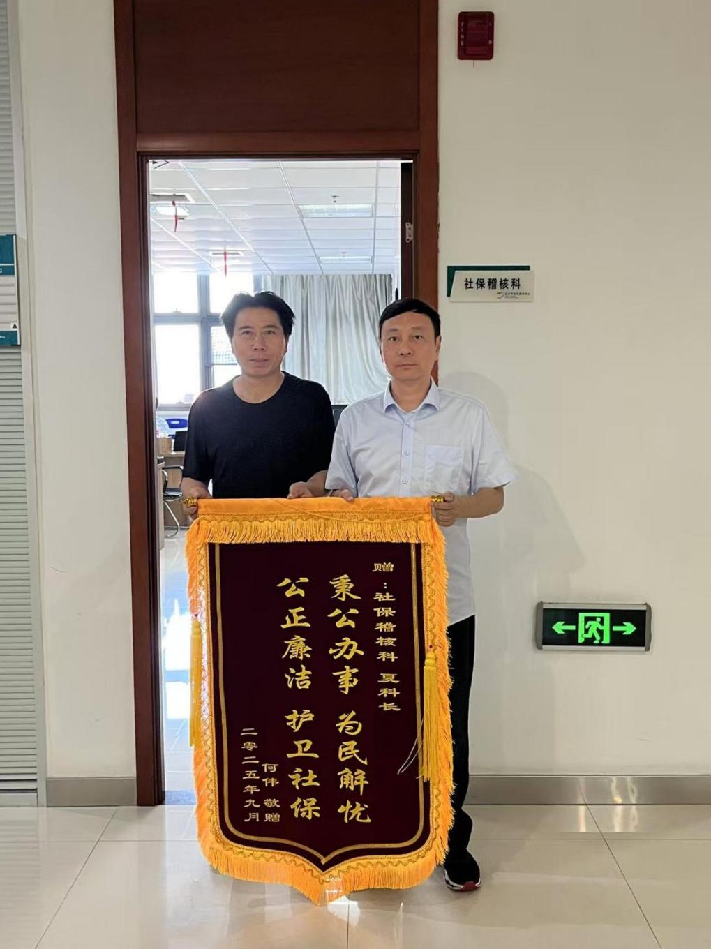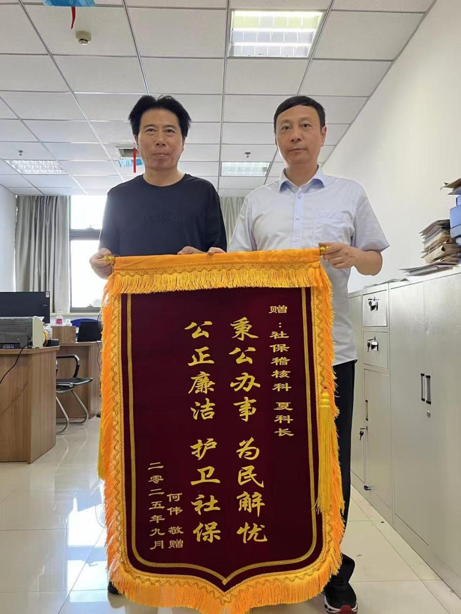 锦旗致谢是办事群众对东台市社保经办服务工作的肯定与认可,也是让社保人铭记的责任与鞭策。东台市社保处将始终践行“记录一生,服务一生,保障一生”的庄严承诺,不断优化各项社保经办服务工作,让社保“小窗口”映射为民服务的“大情怀”。
