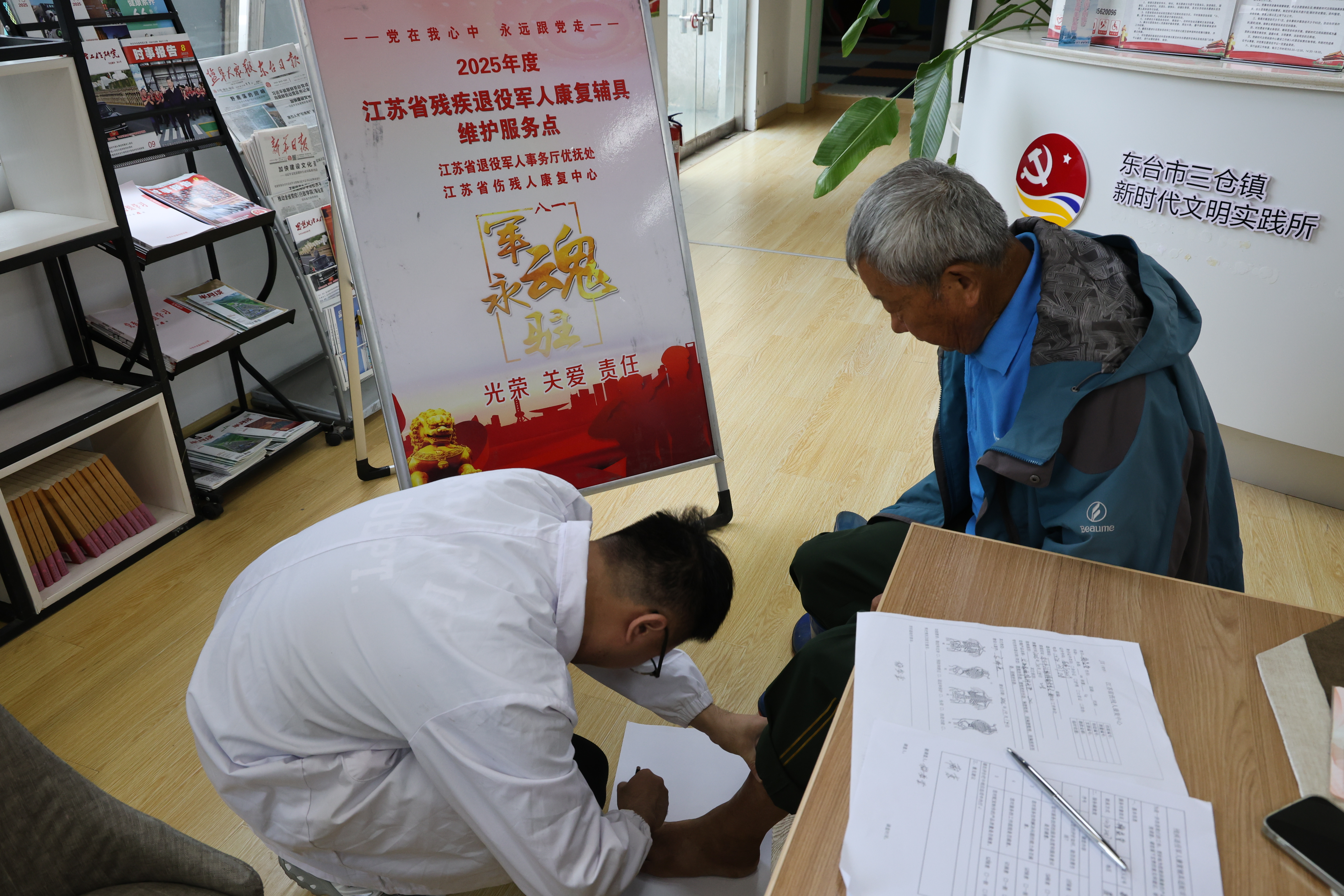 10月14日上午,东台市退役军人事务局联合江苏省伤残军人康复中心,到三仓镇开展伤残军人辅具定制服务活动。