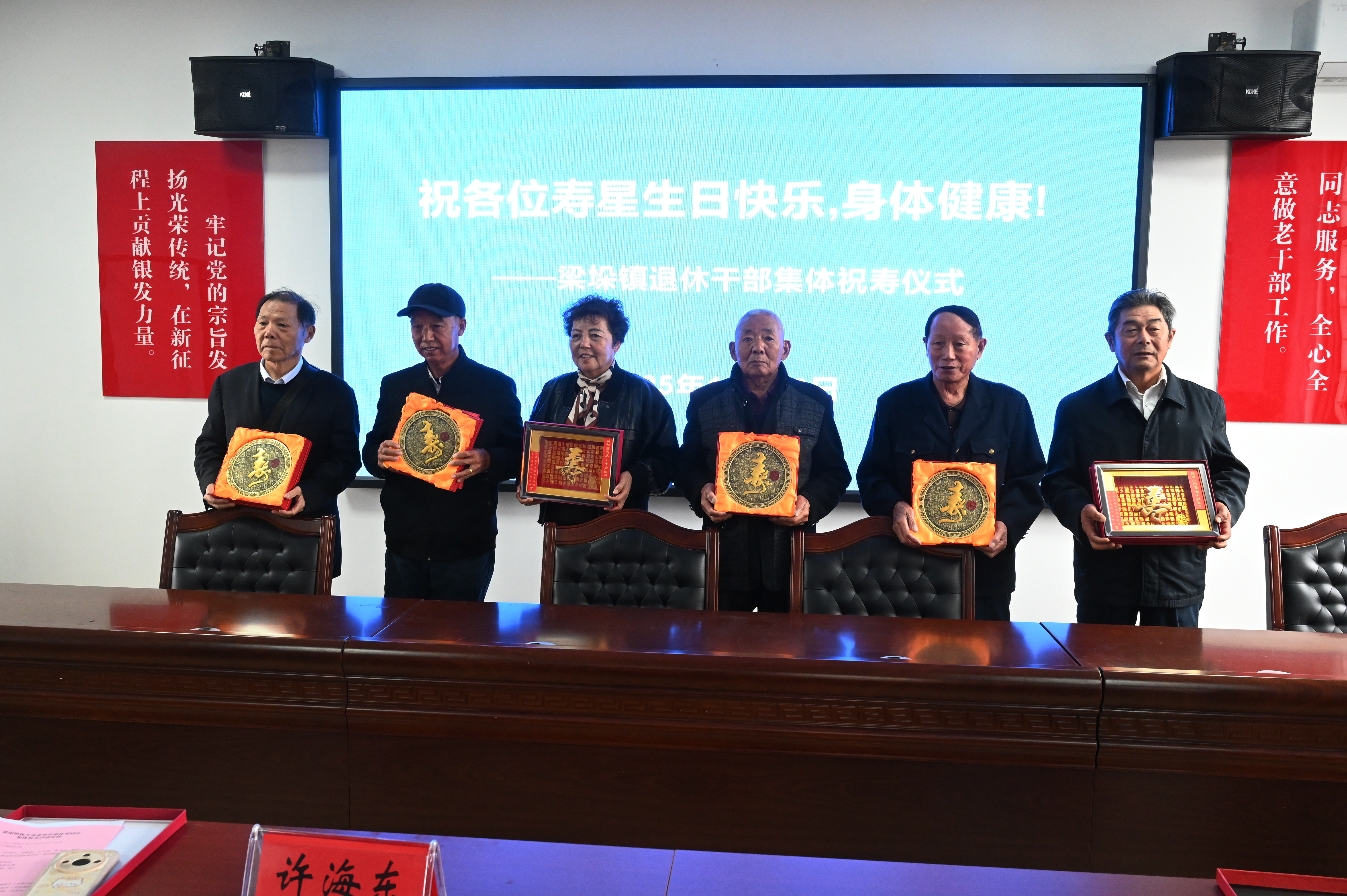 在祝寿仪式上,镇党委组织委员杨波为7名80岁、3名70岁的退休干部颁发寿匾,把党组织关怀的温暖送到他们心坎里。寿星代表登台发言,分享自己在党的培养下,肩负使命、奋发有为,爱岗敬业、履职尽责,服务群众、服务发展,奉献社会、银发生辉的光荣过程,感悟党的十八大以来在习近平新时代中国特色社会主义思想指引下,城乡面貌发生翻天覆地变化,人民群众安居乐业,对迈上全面建设社会主义现代化国家新征程充满信心。