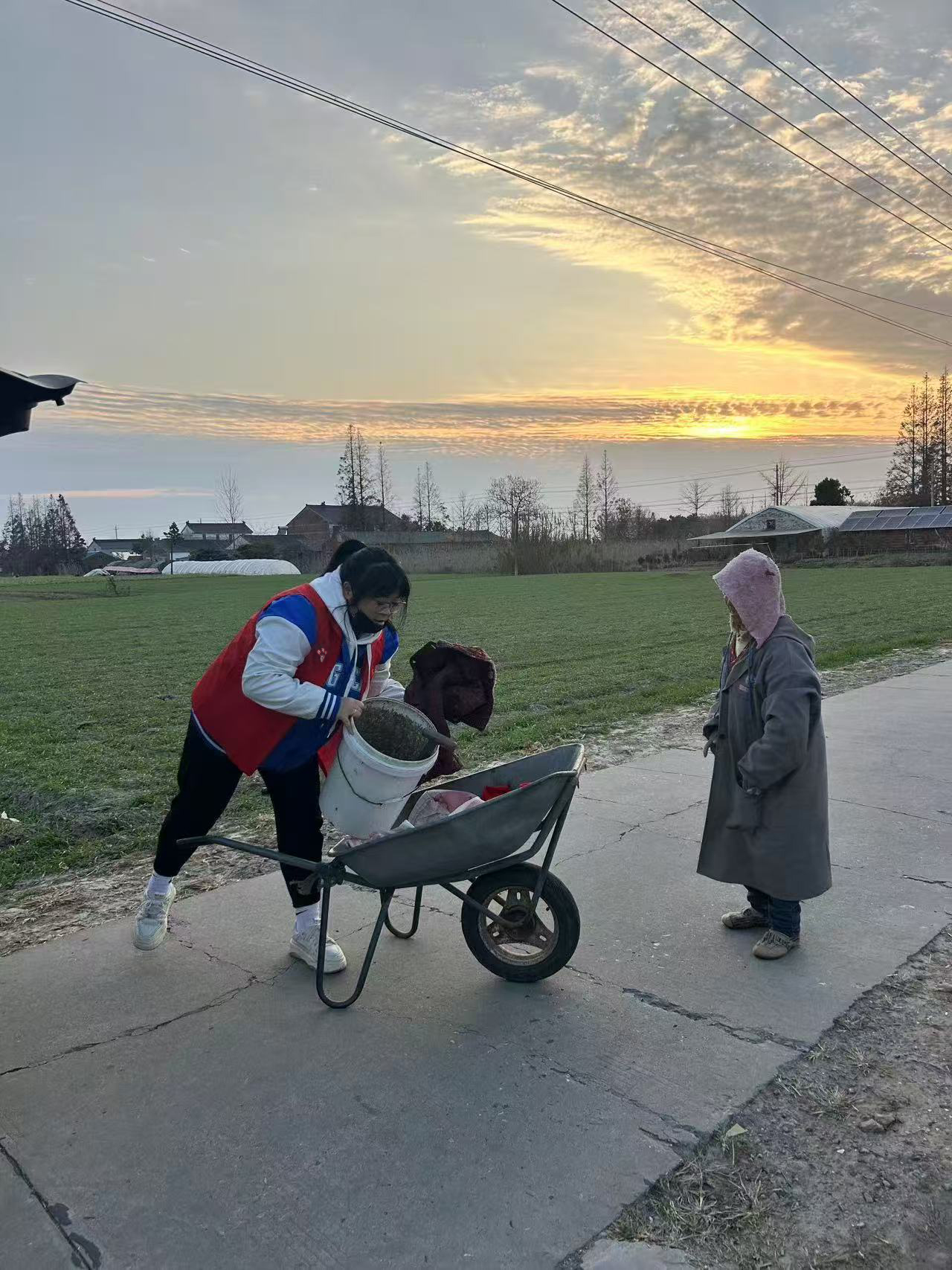 冬日寒意渐浓,为解决老年农户农作物运输难题,志愿者们主动走进田间地头,帮助老人将待售农作物快速转运至路边收购点。劳作间隙,志愿者们贴心叮嘱老人:“天色渐暗、气温较低,一定要注意防寒保暖,农活可以明天再做,身体才是根本”,朴实的话语与实干的身影,让农耕路上充满温情。