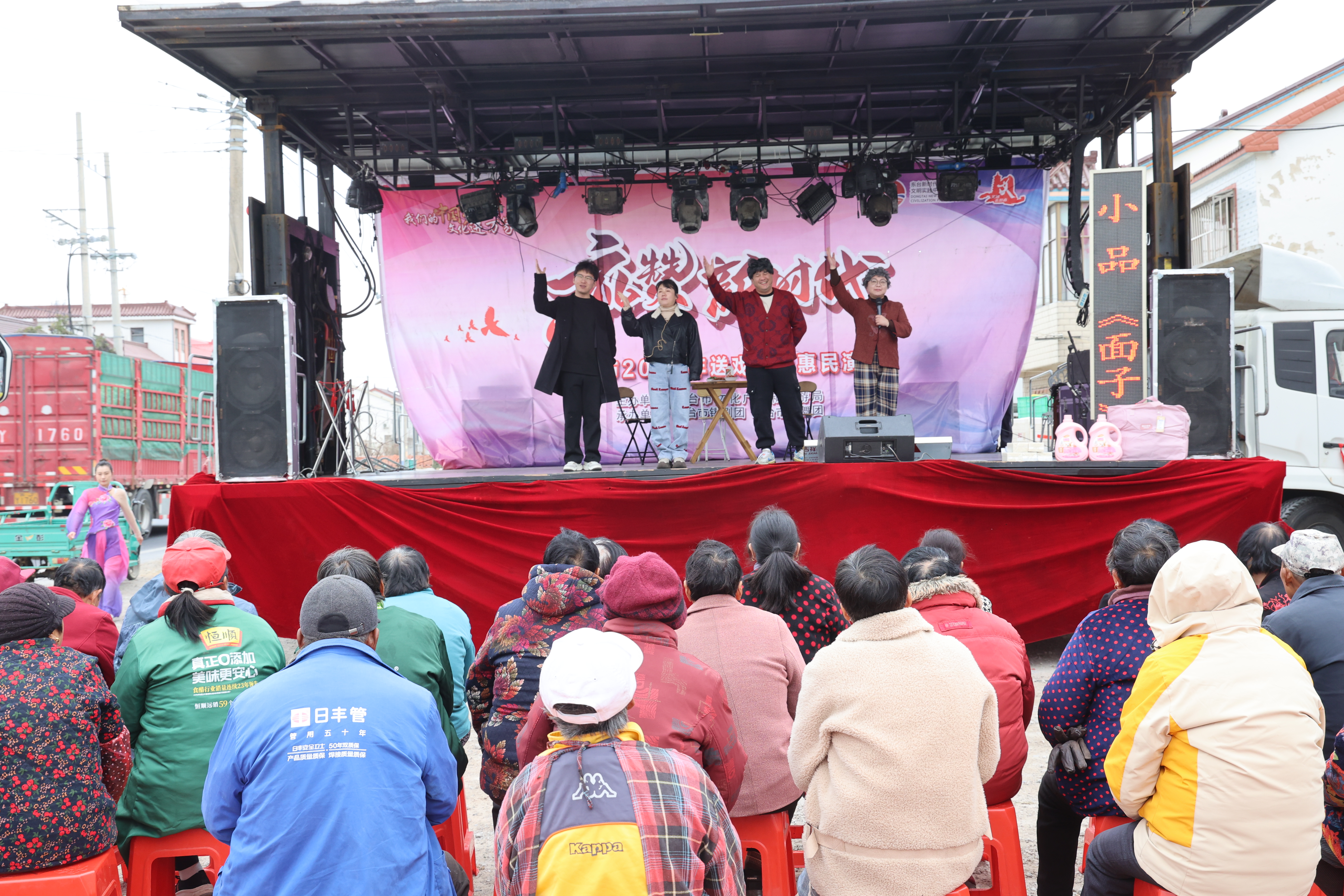 12月8日至10日,由东台市文化广电和旅游局主办,东台市锡剧团、歌舞团承办,三仓镇新时代文明实践所协办的“礼赞新时代”送戏下乡惠民演出活动在新元、官苴、洋中、兰址、镇南及镇文化中心群文大舞台陆续开展,演出以戏曲、歌舞、小品等多样形式,为广大群众在家门口送上一场场精神文化盛宴。