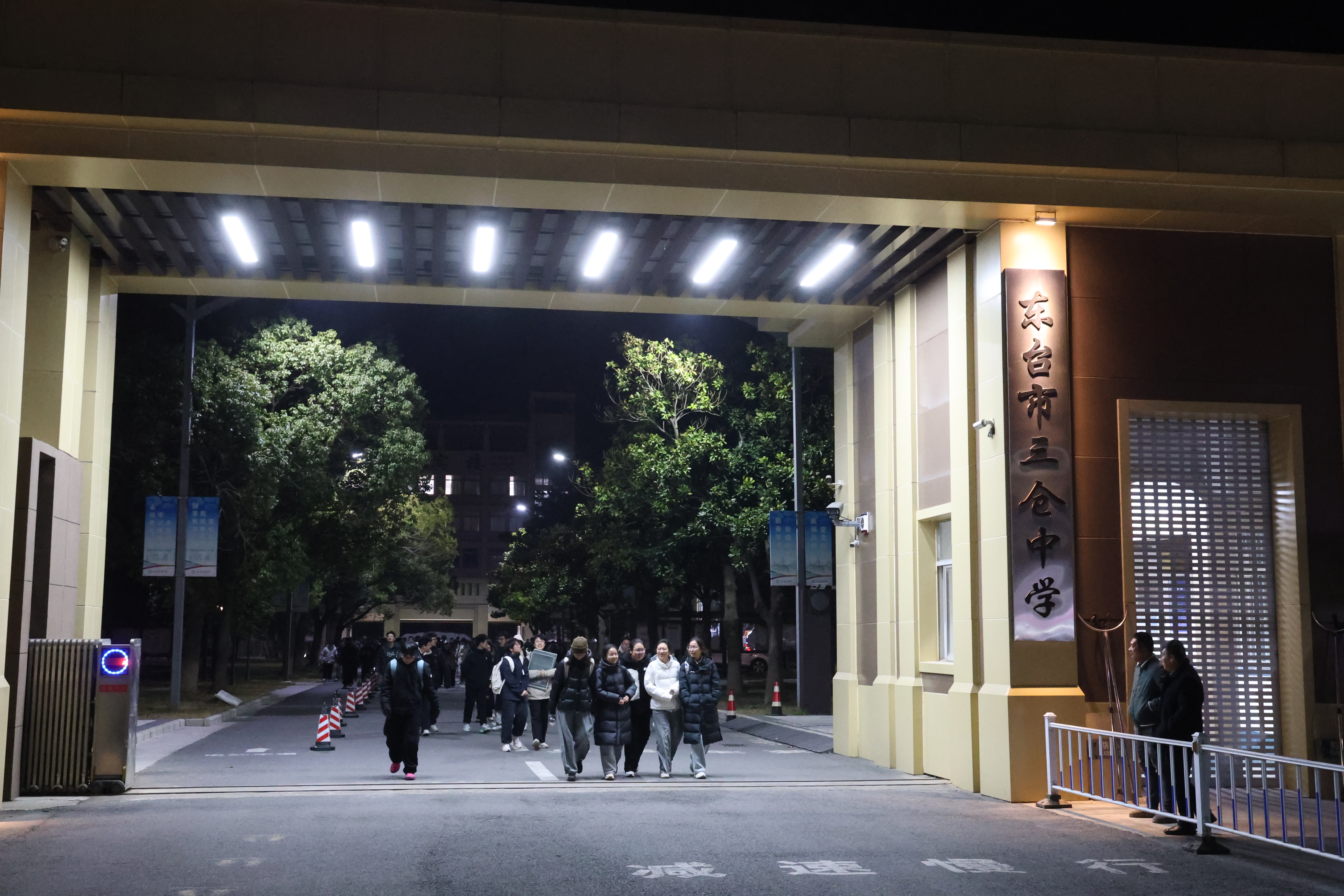 作为一所农村四星级高中,三仓中学晚自习放学时间通常在晚上10点10分至10点半之间。但由于部分学生学习刻苦、教师处理班务尽责,实际离校时间往往有所延后。以往,裕华中路路灯统一10点30分熄灭,许多晚归师生一出校门就进入“摸黑路”,带来安全隐患,让师生与等候的家长感到不便和担忧。