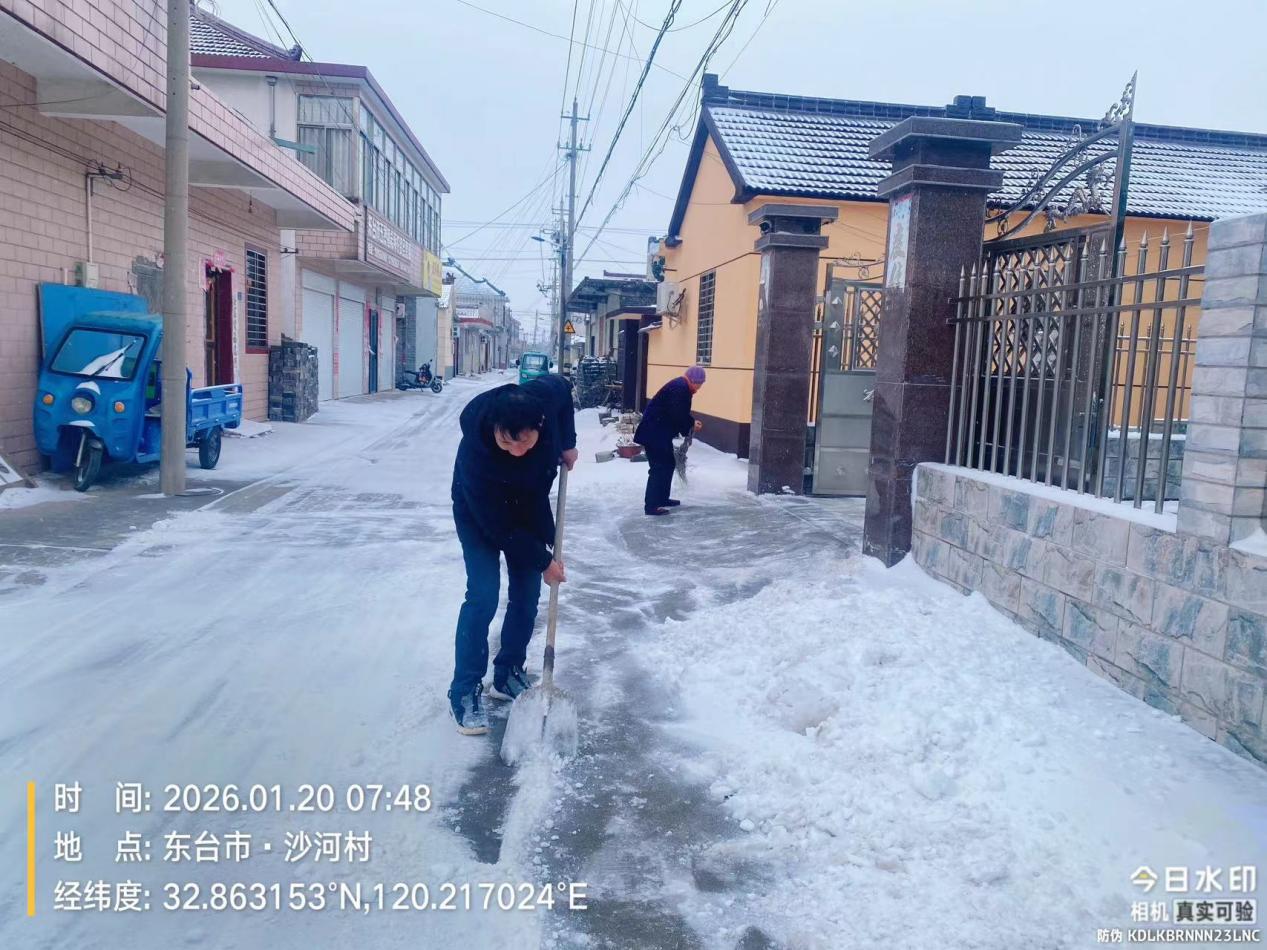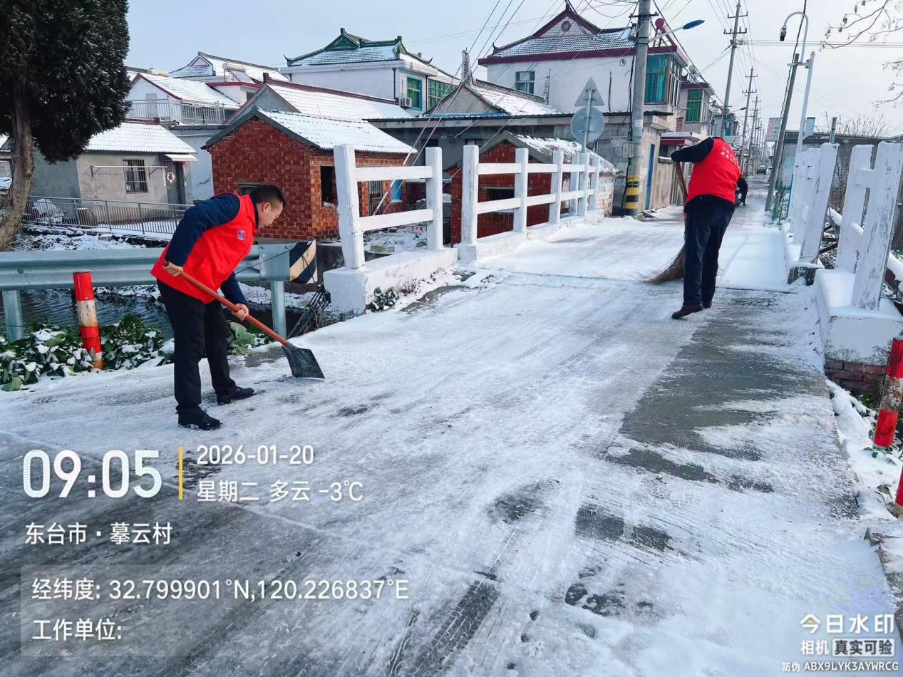 1月19日夜,受降雪、降温及寒潮天气叠加影响,东台市五烈镇气温骤降,乡村道路被大范围积雪覆盖,部分路段出现结冰湿滑现象,严重影响群众出行安全及生产生活秩序。面对雪情,五烈镇22个村党组织迅速响应、主动担当,组织村干部、党员率先垂范,带领群众志愿者、网格员自带工具投身扫雪除冰行动,用实干驱散严寒,以担当守护平安,让党旗在寒潮风雪一线熠熠生辉。