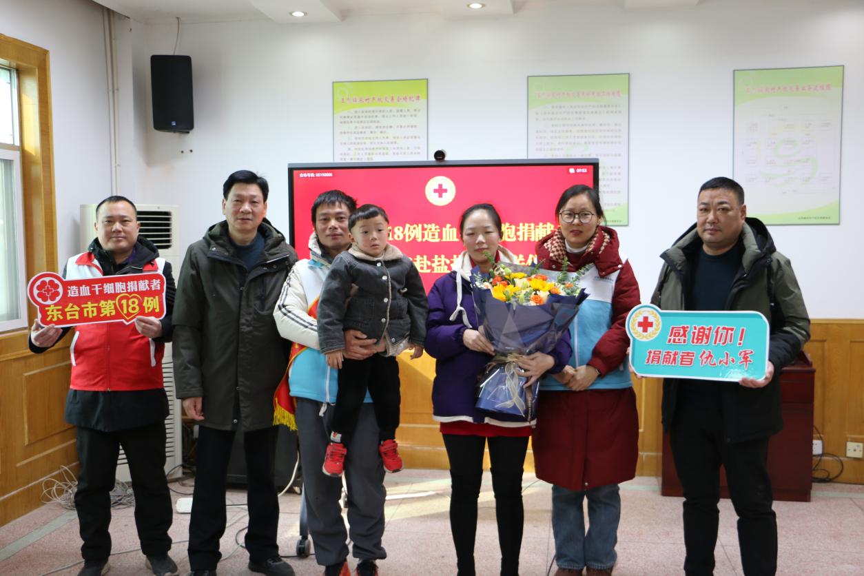 1月23日上午,东台市红十字会、五烈镇人民政府共同为赴盐城市第一人民医院捐献造血干细胞的联堡村志愿者仇小军举行了一场温馨而隆重的欢送仪式。市、镇村有关领导以及红十字志愿者对仇小军人道、博爱、奉献的崇高精神表达敬意,并为其披上绶带,颁发“爱心大使”证书,敬献鲜花。