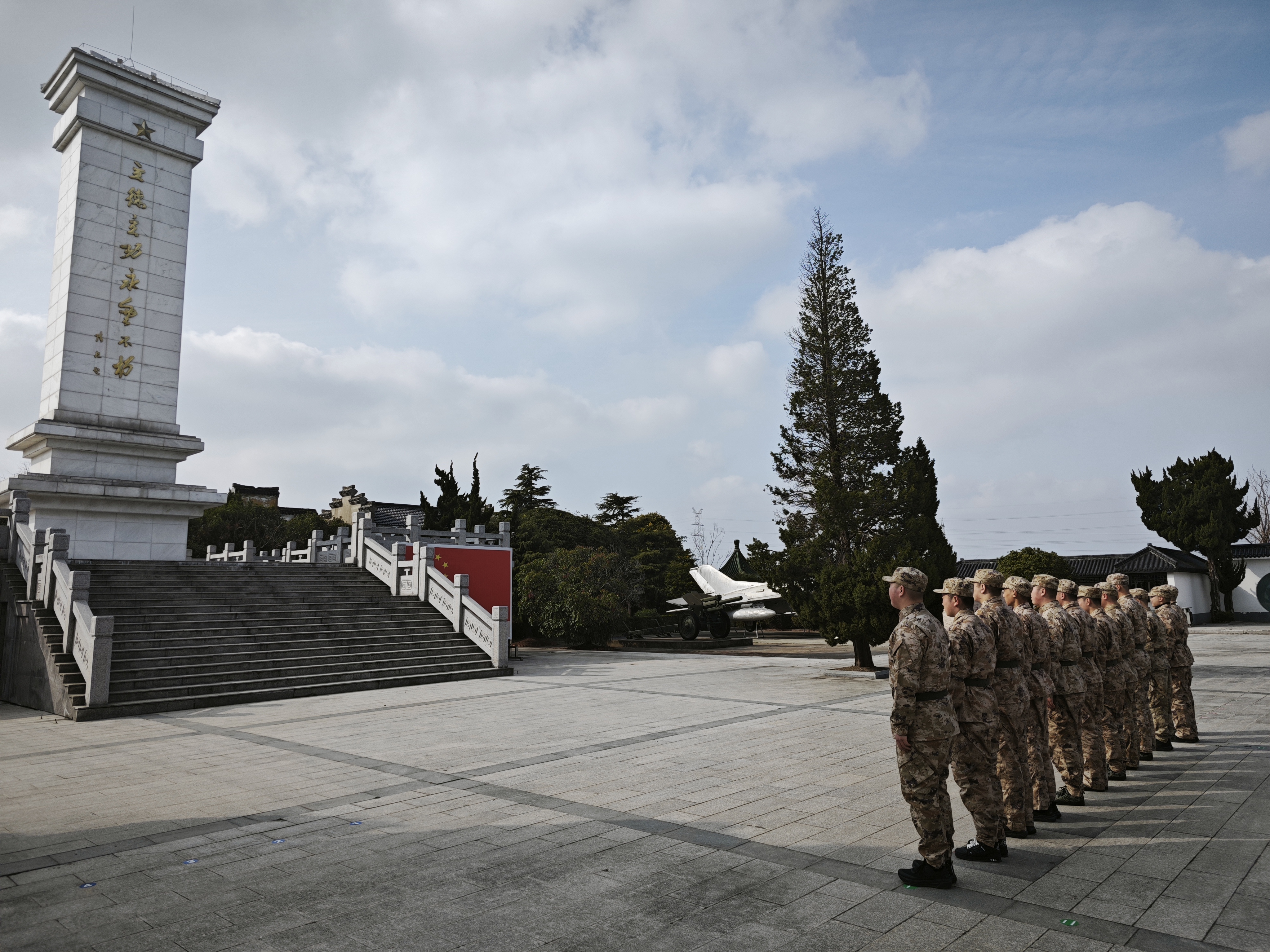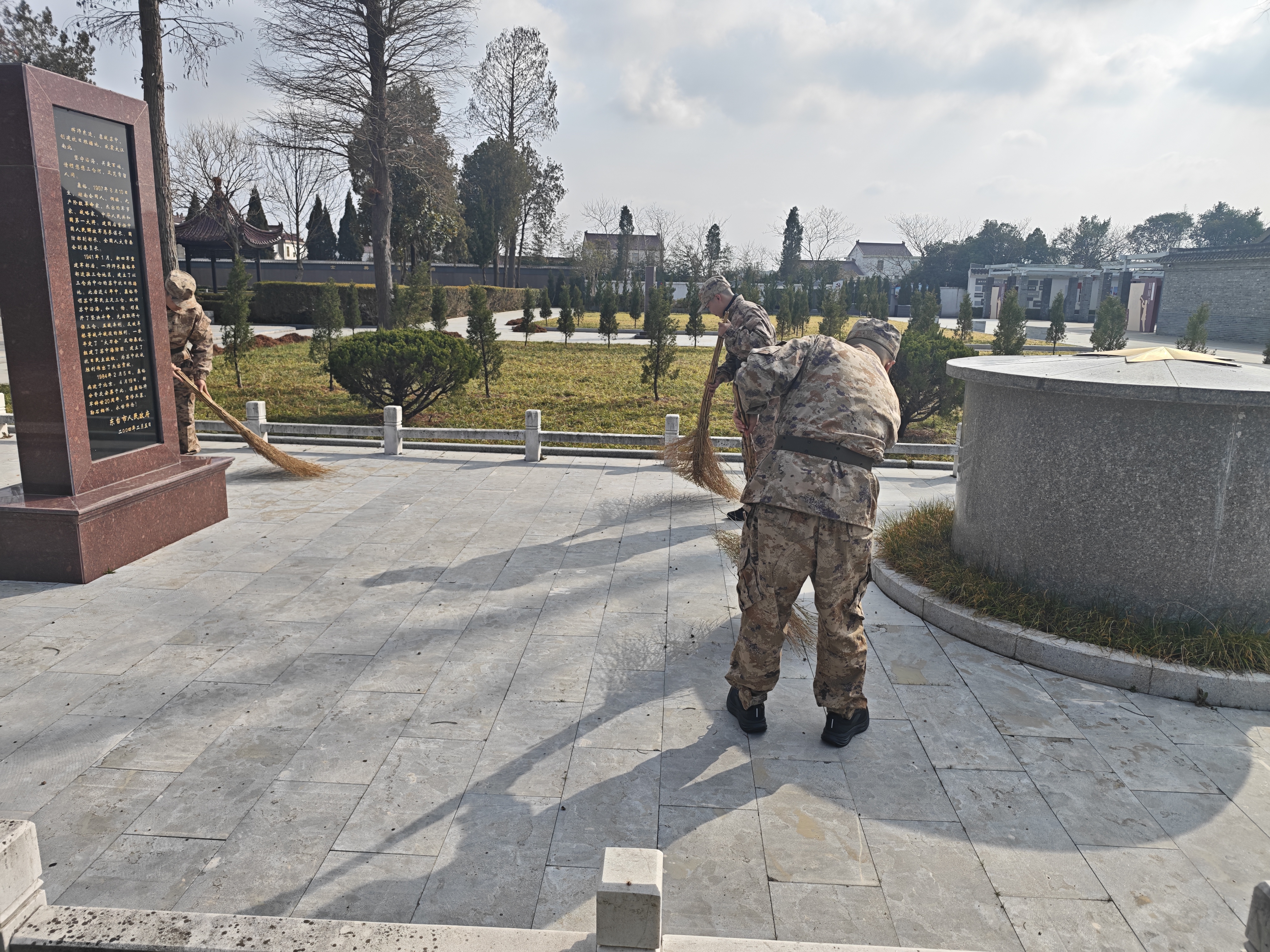 当天下午,三仓烈士陵园内松柏苍翠、庄严肃穆。12名身着迷彩服的“双合格”应征青年整齐列队,在革命烈士纪念碑前肃立默哀、鞠躬致敬,向为民族解放与人民幸福英勇献身的革命先烈致以最深切的缅怀。在粟裕将军墓及烈士墓区,青年们化身“志愿卫士”,分工协作,认真擦拭每一块墓碑,细致清扫落叶杂物,把对粟裕将军的崇敬融入一言一行,用躬身实践守护英烈安息之地。活动最后,全体人员集体立下从军誓言:赓续英烈精神、永葆军人本色,立志做雷锋式忠诚战士,在军营淬炼成钢、报效国家。