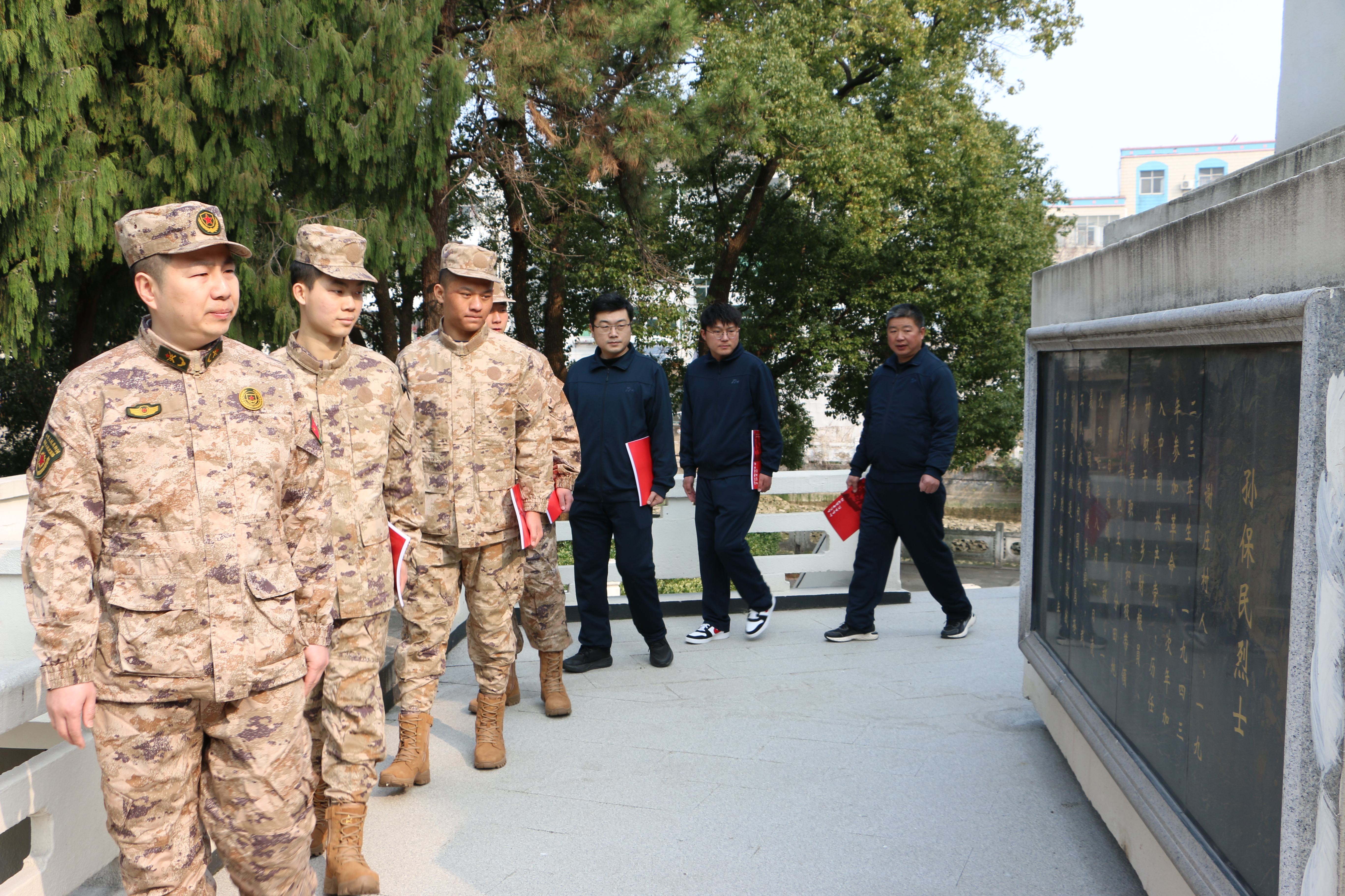 活动中,全体人员身着迷彩服或深色便装,在烈士纪念碑前列队肃立。镇党委委员、武装部长黄伟作动员讲话。他说:“这里安息着为民族独立、人民解放而英勇献身的革命先烈。我们既是国家安全的捍卫者,也是红色基因的传承人。要在缅怀中自省,在植树中明志,将对英烈的崇敬之情转化为练兵备战、服务家乡的实际行动。”