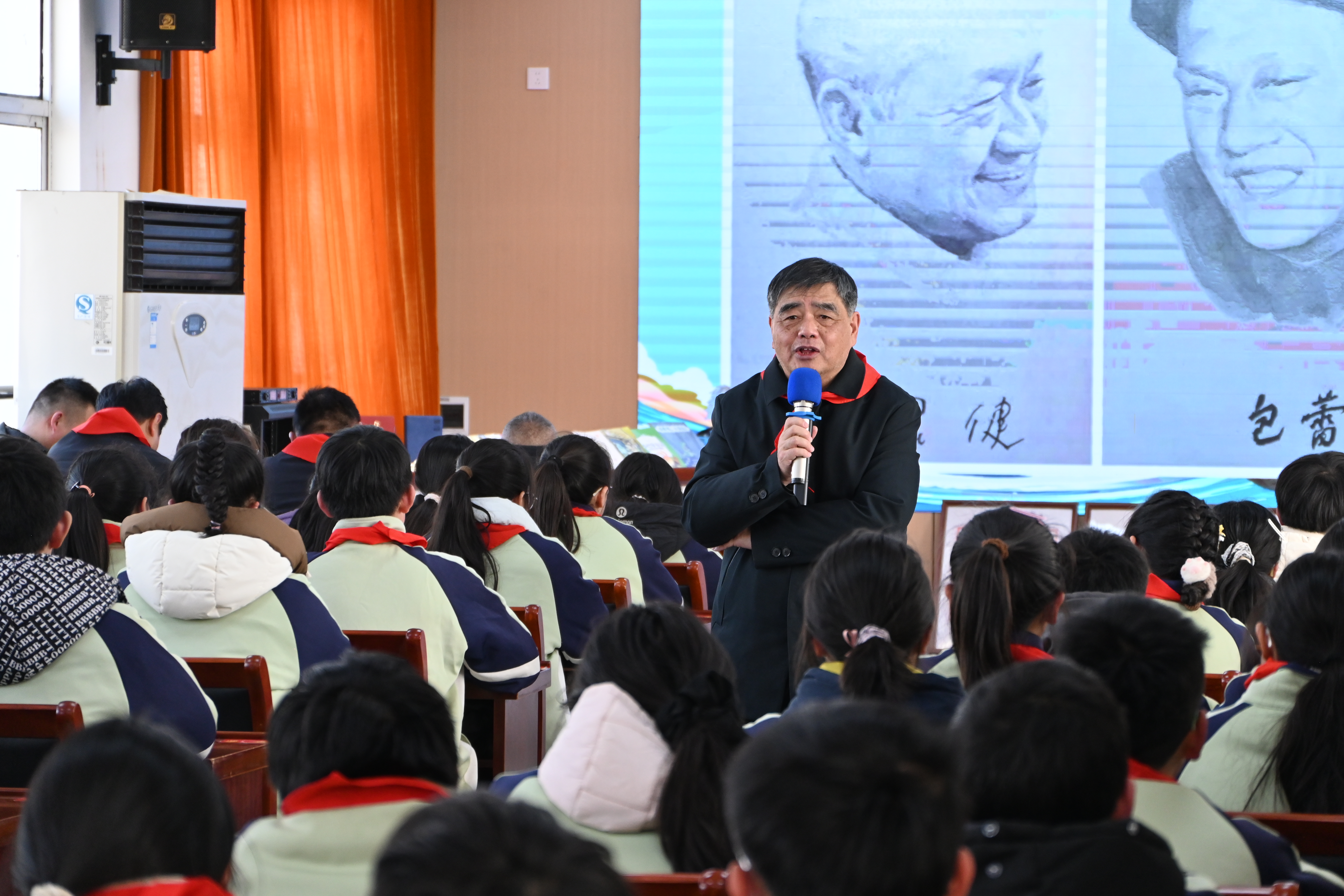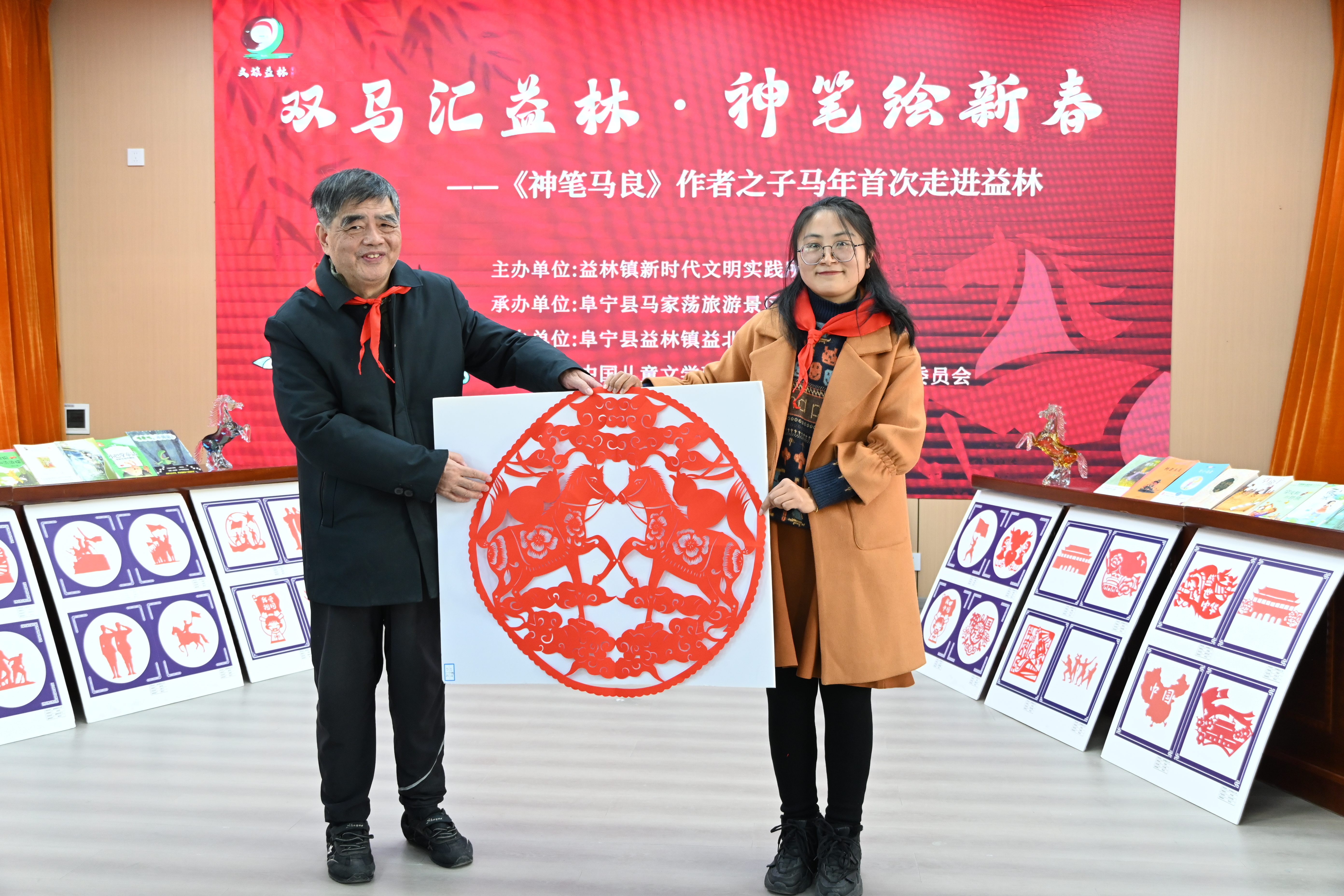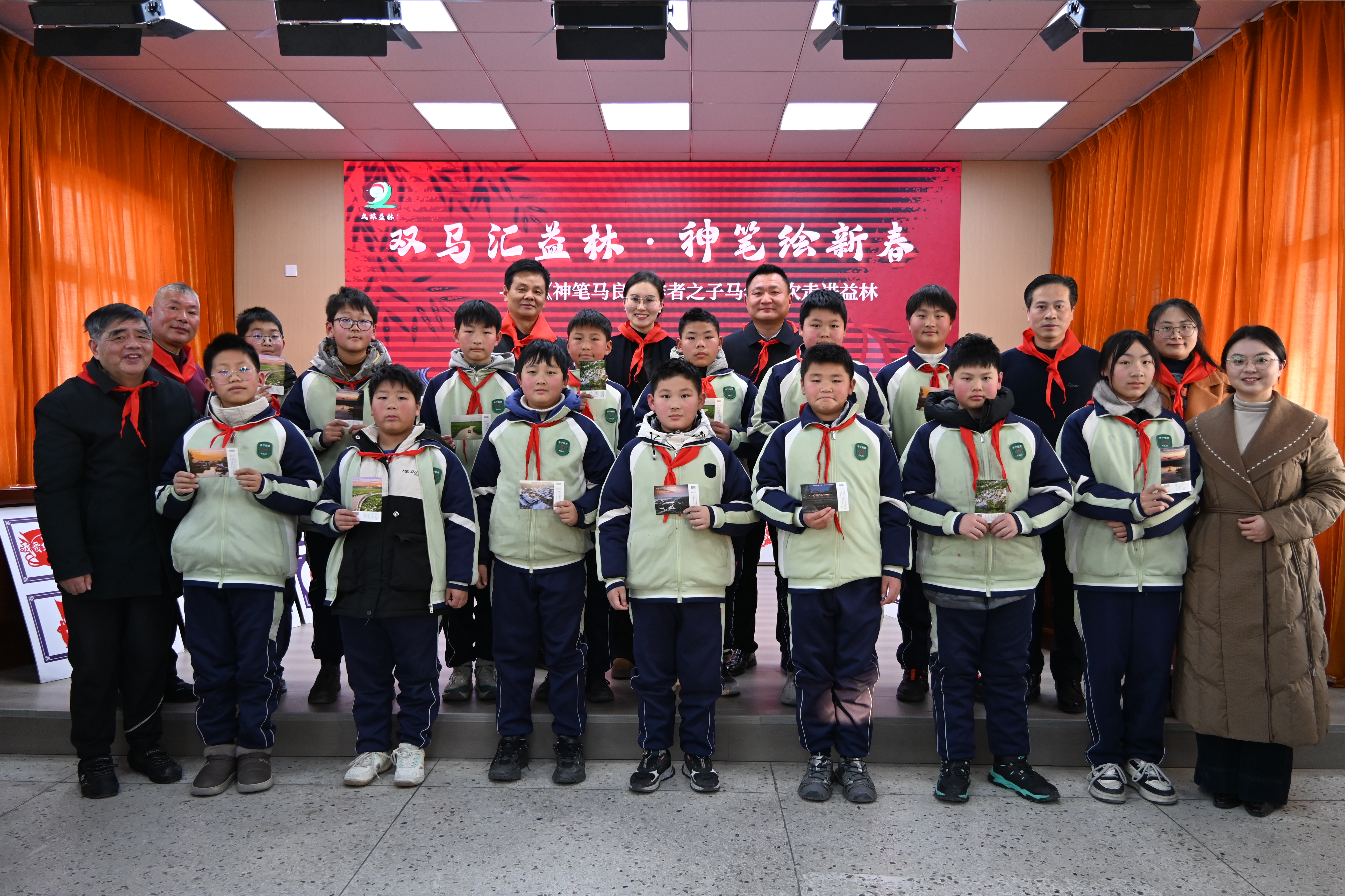 1月12日,由阜宁县益林镇新时代文明实践所主办,阜宁县马家荡旅游景区、益林镇益北小学承办的“双马汇益林·神笔绘新春”——《神笔马良》作者之子洪画千先生马年首次走进益林主题交流活动在该镇益北小学举办。