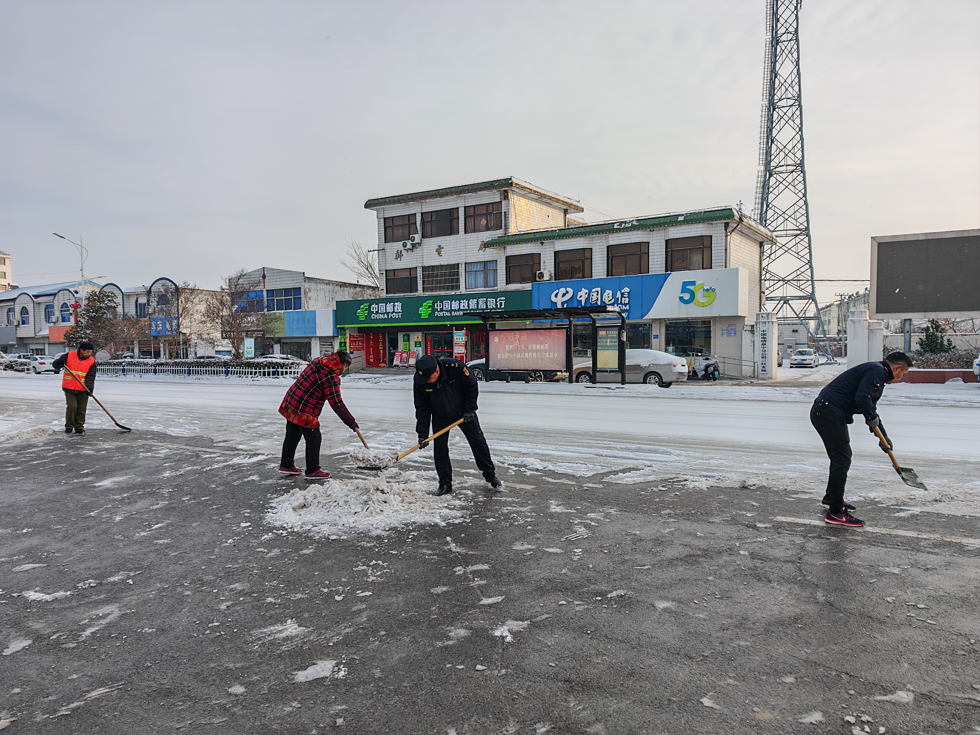 寒风中,大家不畏严寒、分工协作,对派出所、卫生院、便民服务中心、主要干道等重点区域路面进行彻底清理,有的弯腰挥锹铲雪,有的手持扫帚清扫残雪,有的合力搬运堆积的雪堆,现场一派热火朝天的劳动景象,“红马甲”在白雪皑皑的路面上交织成一道靓丽的风景线。镇农路办在通阜线、东灶线等6座桥撒布石子约16吨,有效开展防滑处理。在各村(社区)的扫雪现场,党员干部们始终冲在最前面,挥舞着工具清理积雪、破除坚冰。对于孤寡老人、残疾人等弱势群体,村干部主动前往帮助清理庭院及房顶上的积冰积雪,保证他们的正常生活。同时,各村通过大喇叭、村民微信群等方式,及时发布道路通行提示,提醒群众注意出行安全。