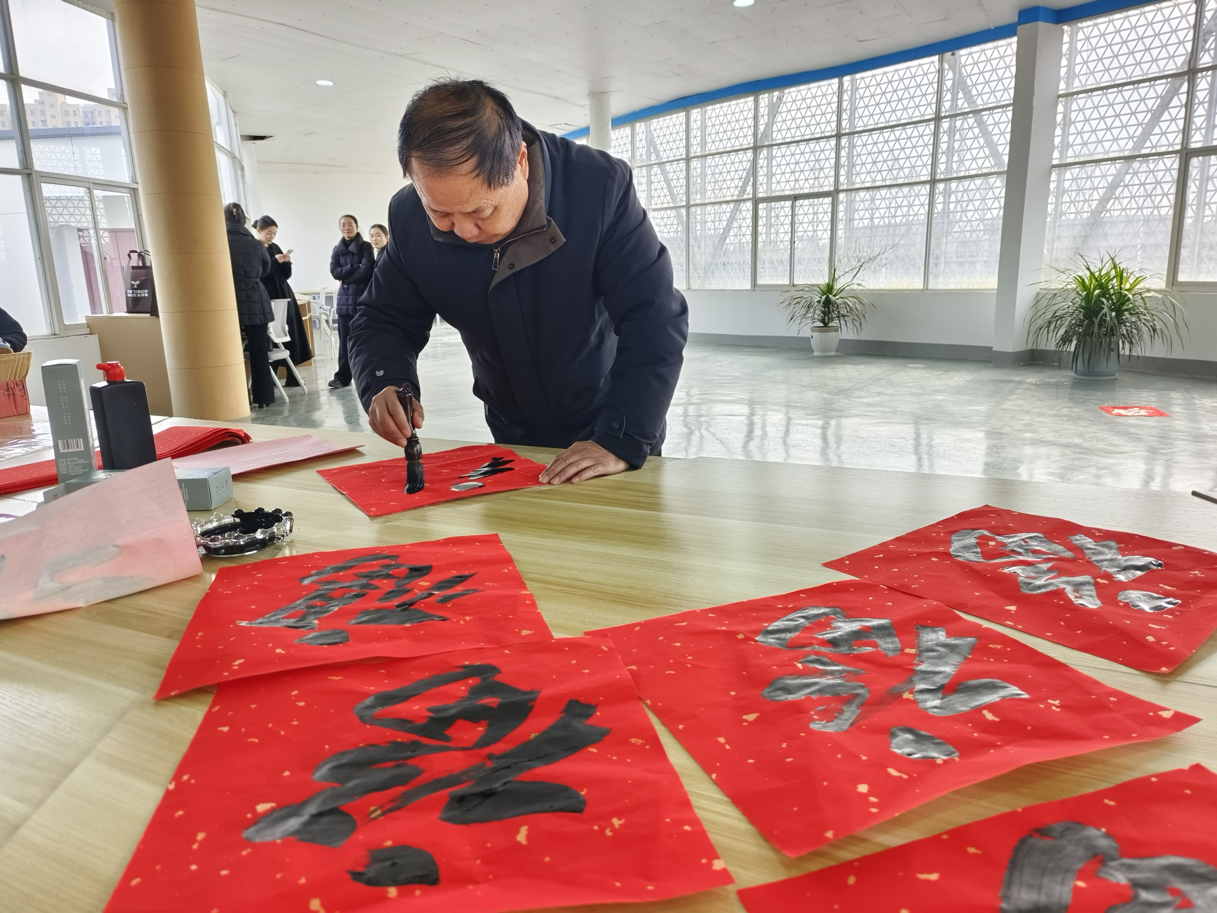 现场邀请两位文学爱好者朗诵分享了张洪文老师部分作品节选。返乡大学生开展了阅读分享。县文联书法家,书写融合阅读元素与新春祝福的春联、福字赠予群众。(尹姿羿 张益轩)