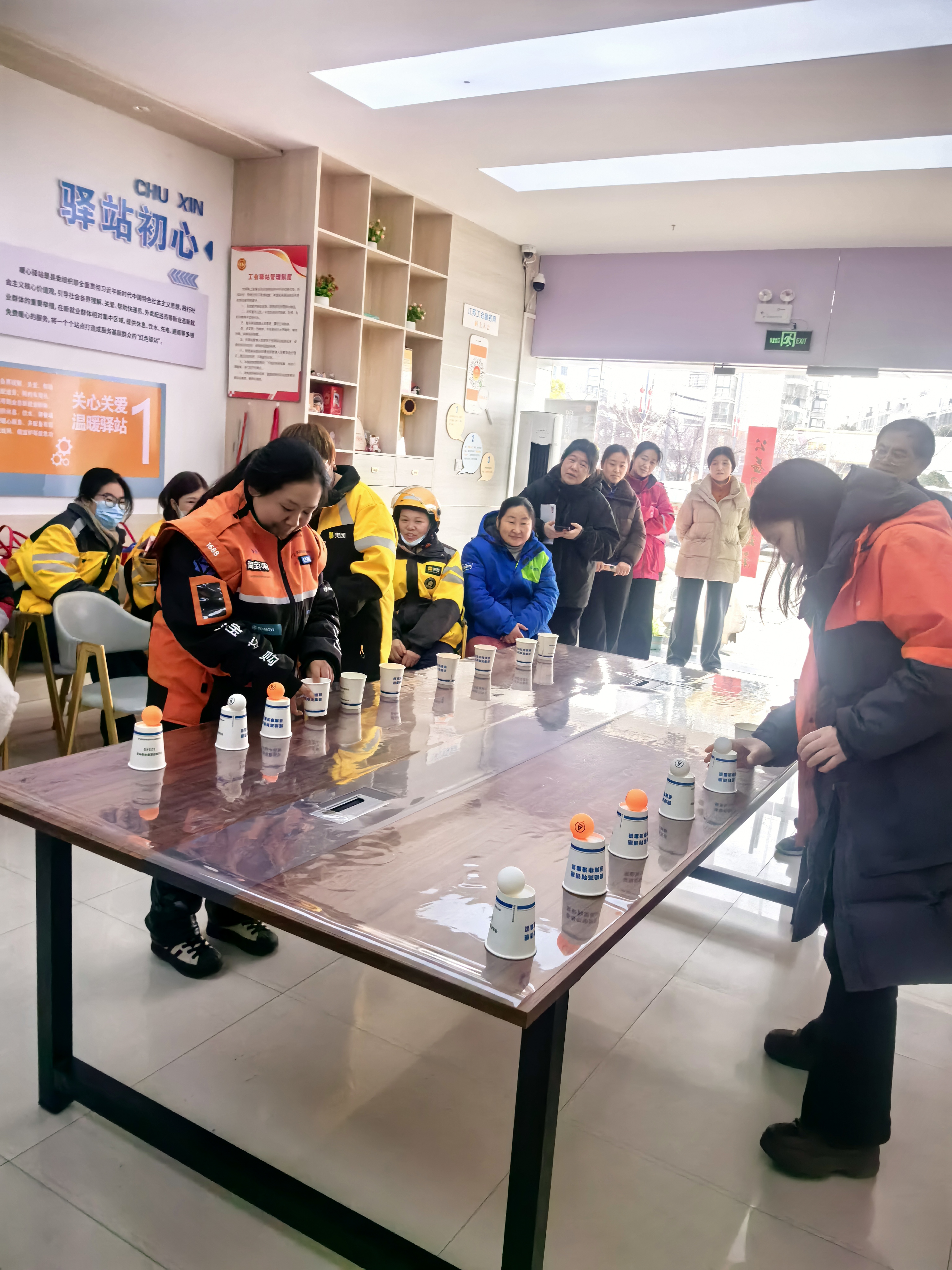 互动交流与趣味游戏环节,让现场氛围持续升温。在互动交流中,女性代表们纷纷打开心扉,分享自己日常工作的酸甜与收获,主动倾诉在户外奔波、职业发展、家庭平衡等方面的困惑与诉求。工作人员认真倾听、详细记录,逐一给予积极回应和贴心建议,力争把服务做到她们的心坎上。随后,“纸杯接球”“筷子夹乒乓球”等精心设计的互动游戏,让平日里匆匆忙忙的“女骑手”“女快递员”们彻底卸下疲惫,积极参与、相互配合,暖心驿站里欢声笑语不断。