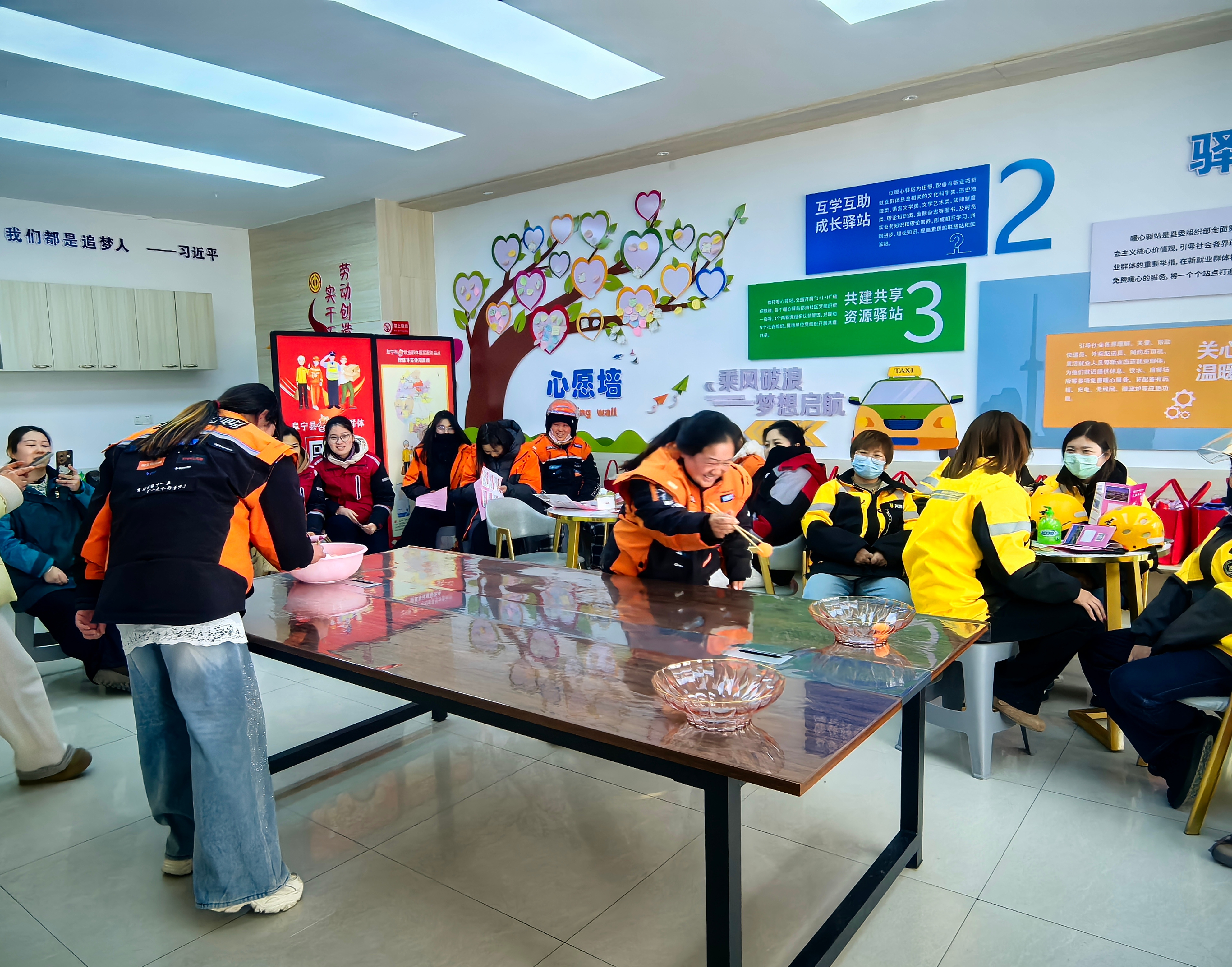 “这个活动太贴心了,不仅收到了节日的祝福,还学到了实用的健康知识,玩得也很开心,这种集体活动感觉特别好。”外卖女骑手杨丽萍说。